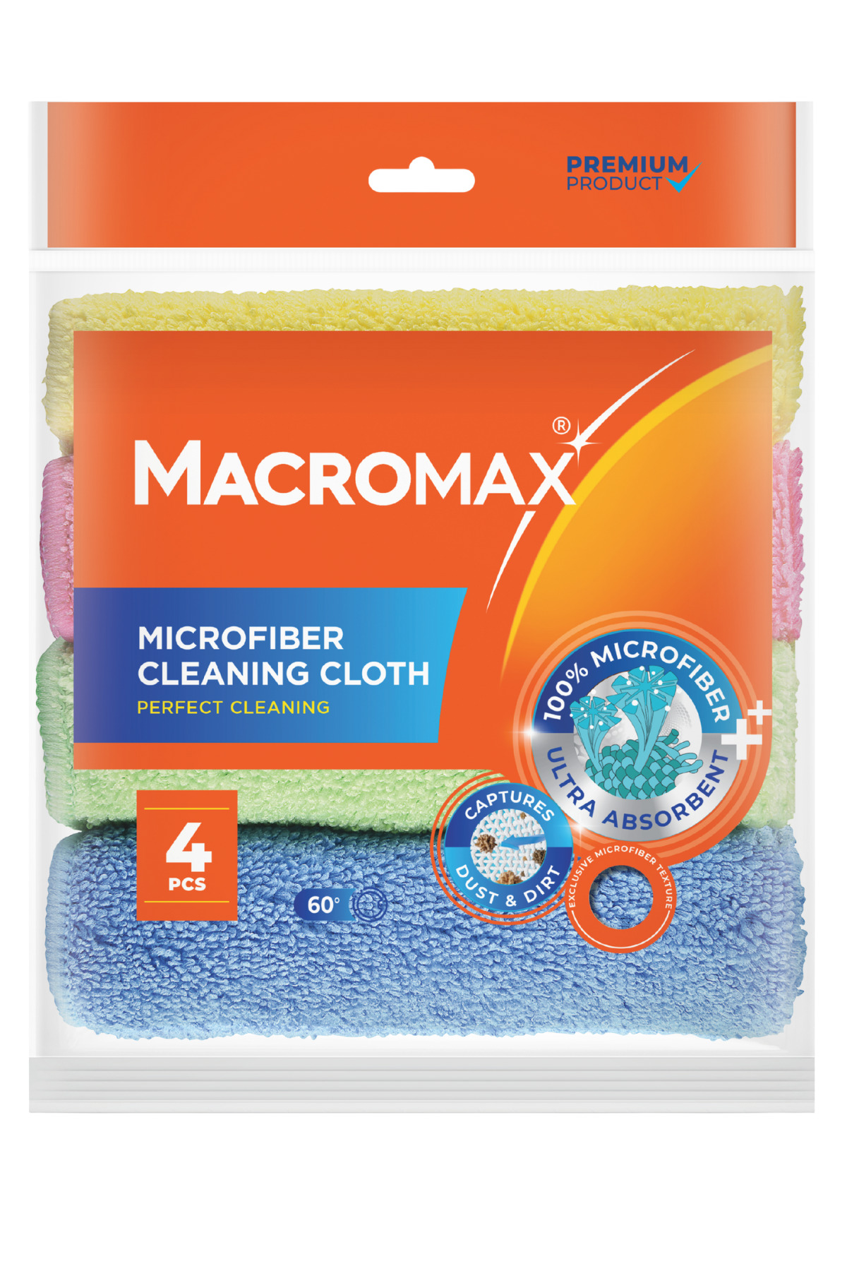 ميزات مناديل تنظيف من الألياف الدقيقة، عبوة من 4 قطع، متعددة الأغراض لإزالة الغبار والمسح من MACROMAX