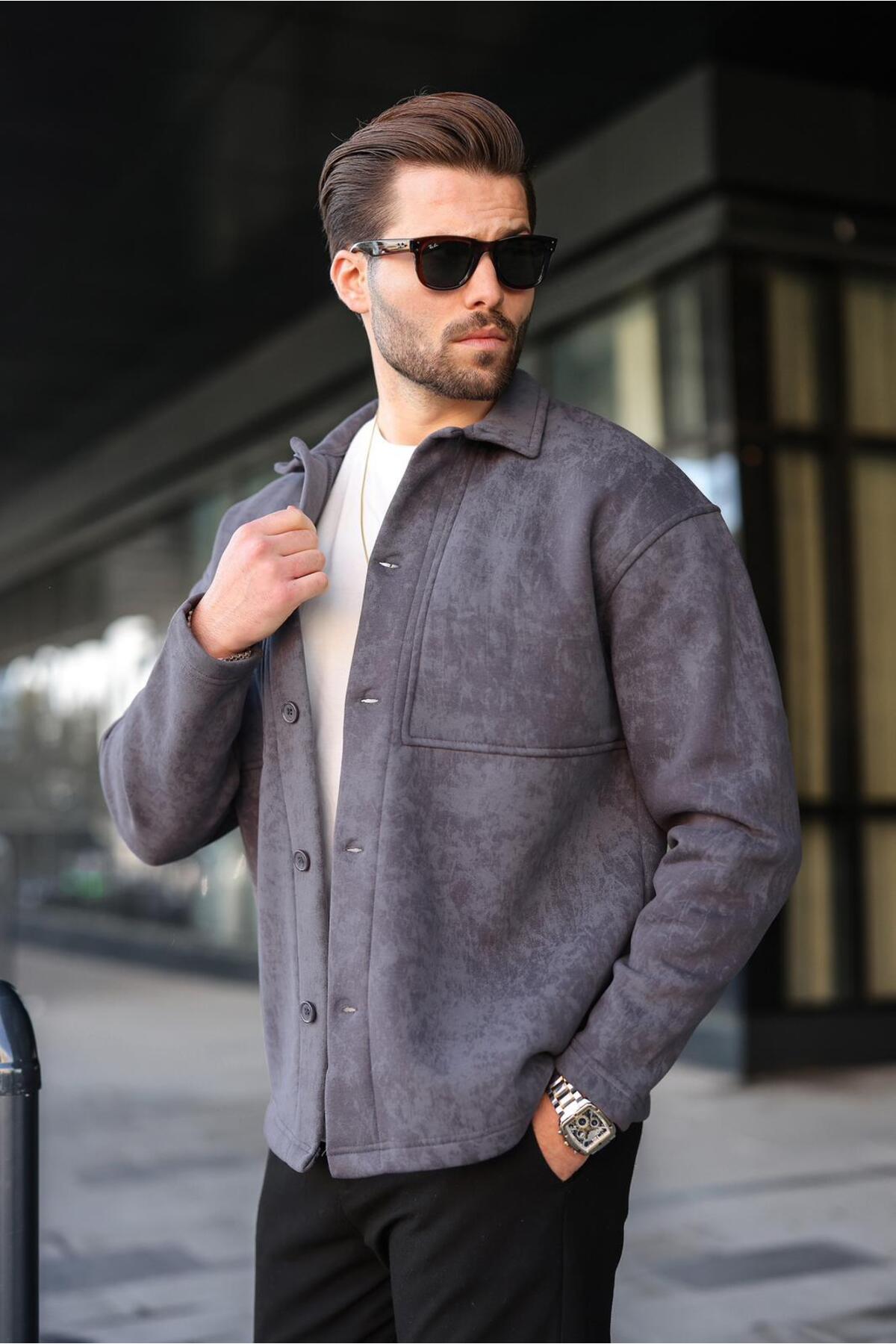 ميزات سترة قميص من الصوف الداخلي بلون الأنثراسيت E6767 من Madmext