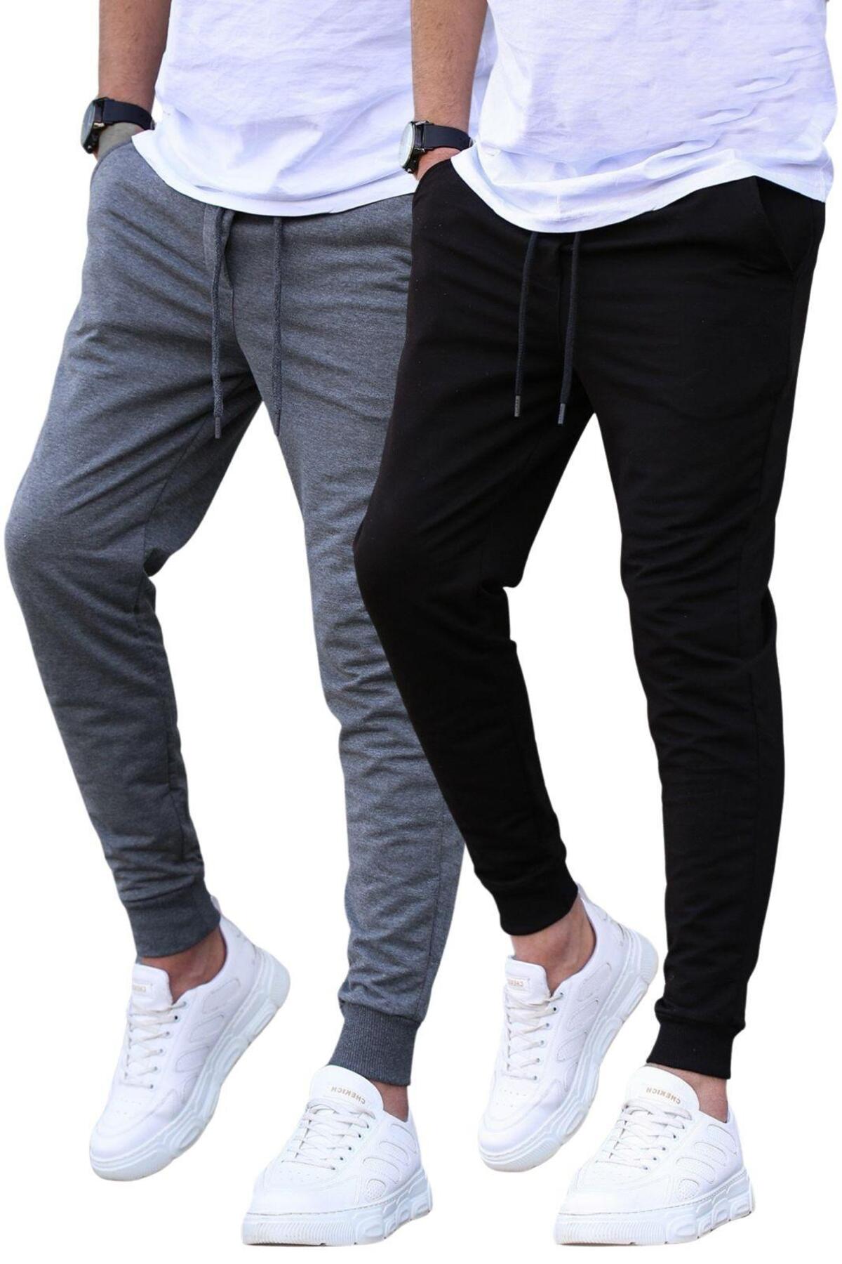 Madmext بنطلون رياضي رجالي أسود/أنثراسيت مع أربطة مطاطية، عبوة من قطعتين E7446