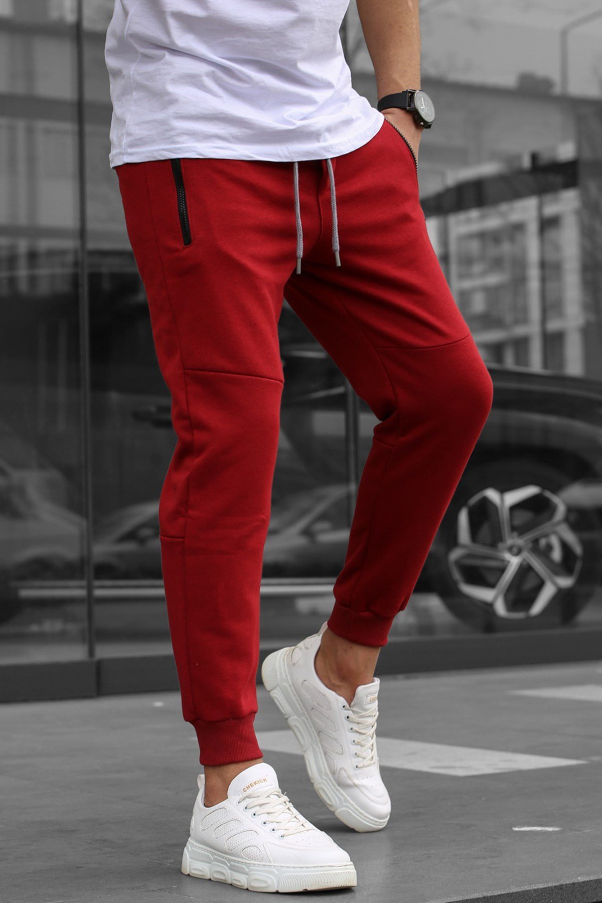 ميزات بنطال رياضي رجالي أساسي باللون العنابي من Madmext