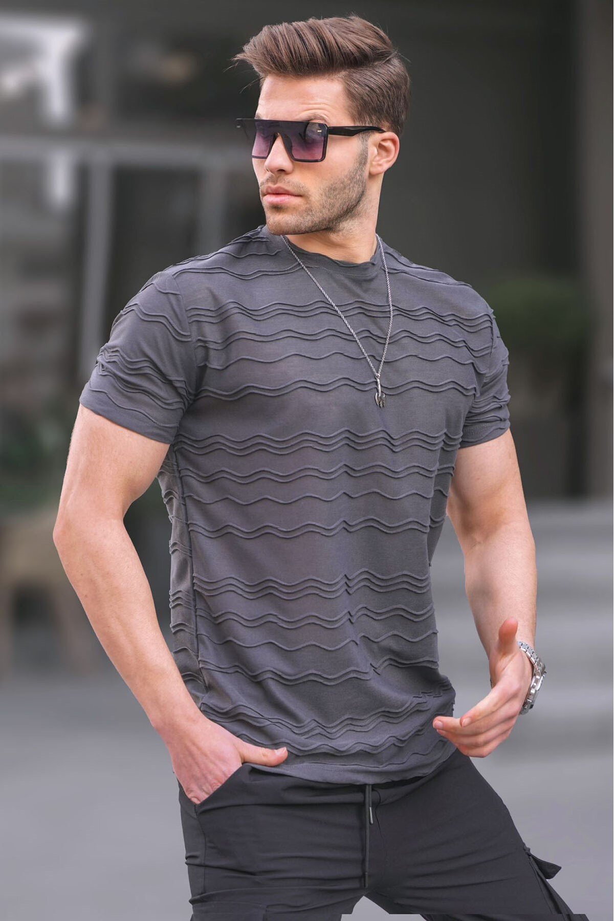 ميزات تي شيرت رجالي أساسي مدخن منقوش 6096 من Madmext