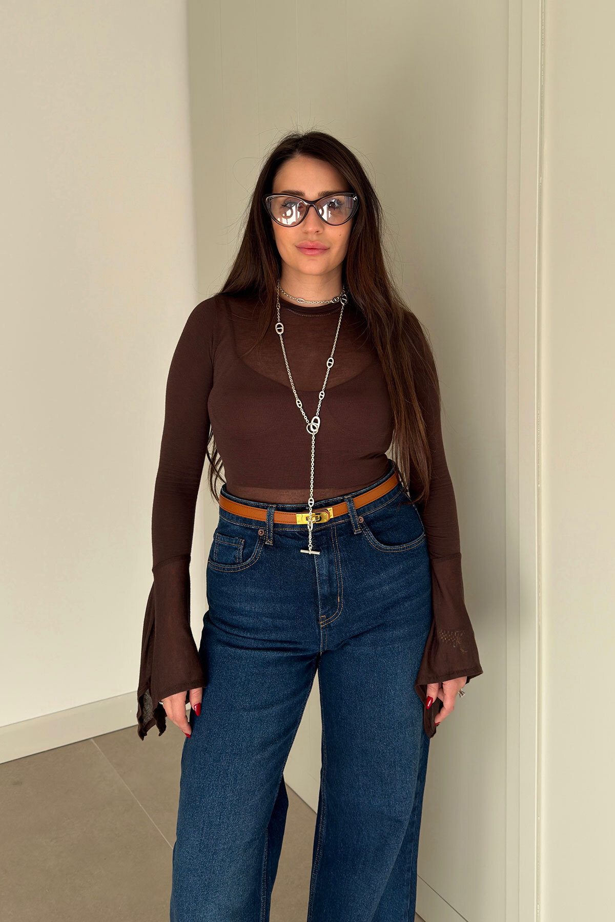 ميزات بلوزة إسبانية أساسية بأكمام - بني من MAGARDE