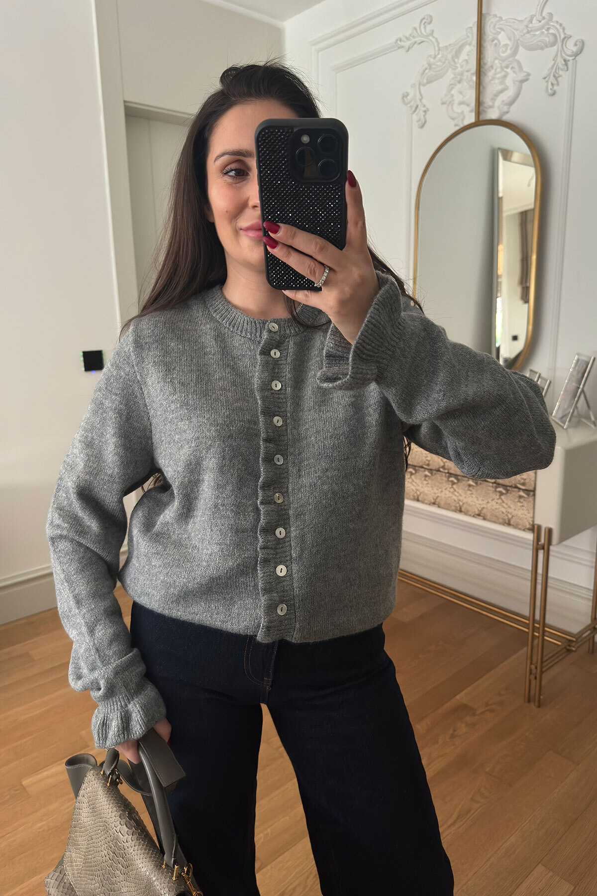ميزات كارديجان مكشكش بأزرار - رمادي من MAGARDE