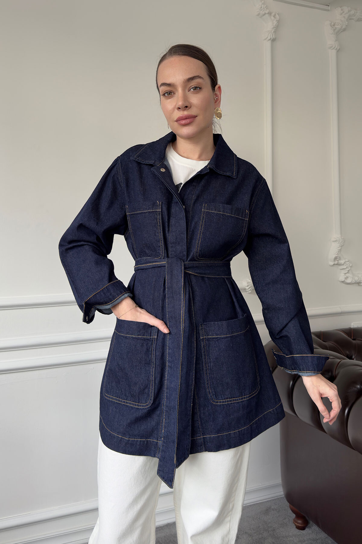 MAGARDE سترة كبيرة الحجم بأربعة جيوب - أزرق