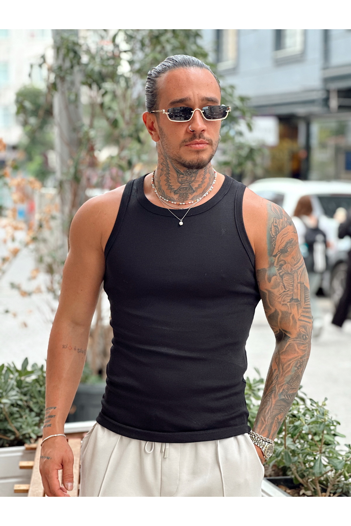 manch collection قميص أساسي من القطن الممشط باللون الأسود