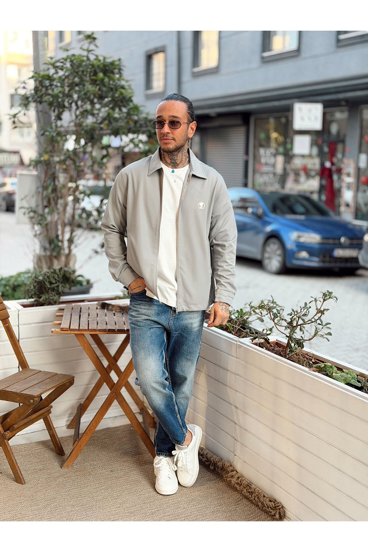 manch collection موسمي سترة قماشية رياضية باللون الرمادي