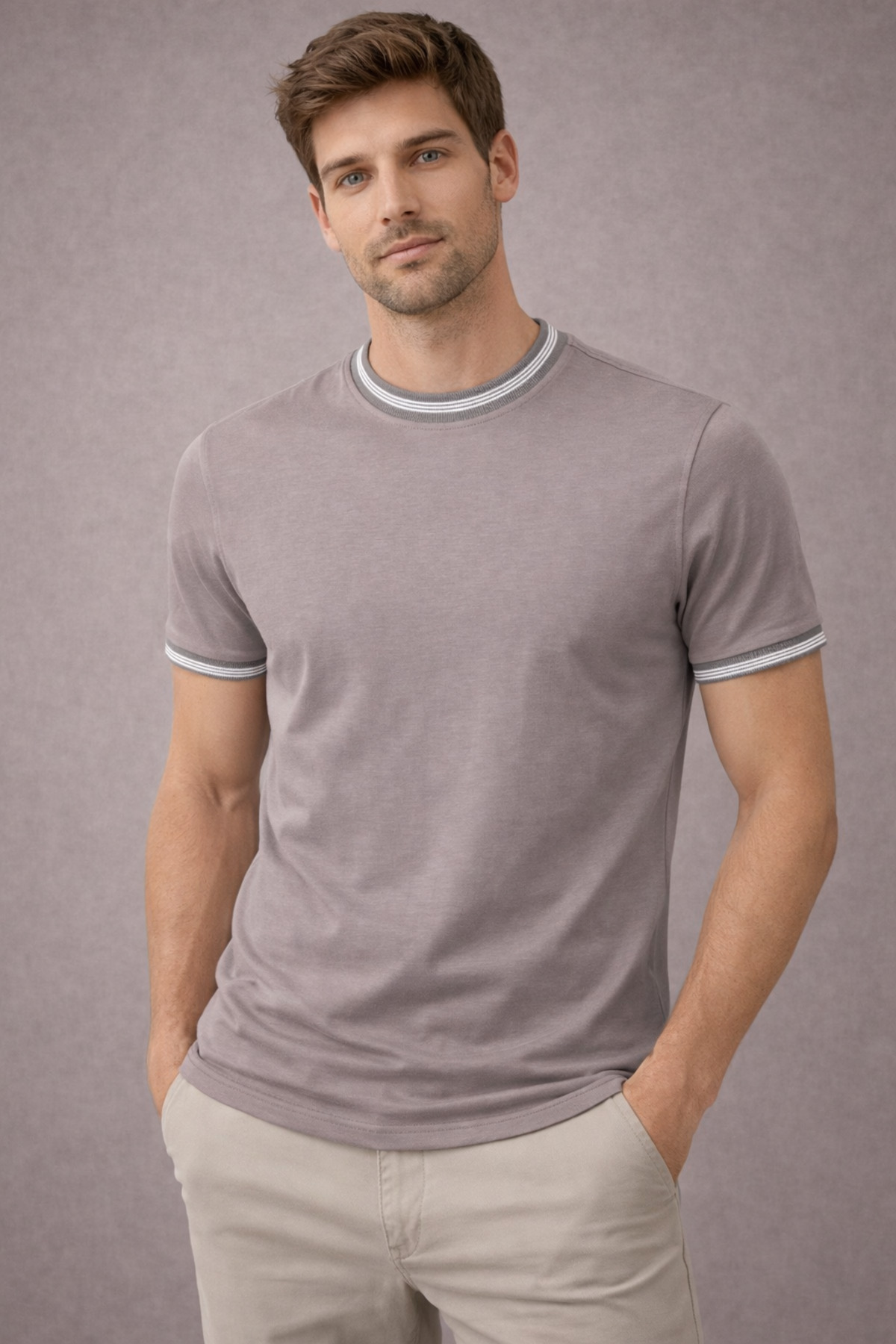 ميزات تيشيرت رجالي برقبة دائرية 21-10382 باللون الرمادي من Manche