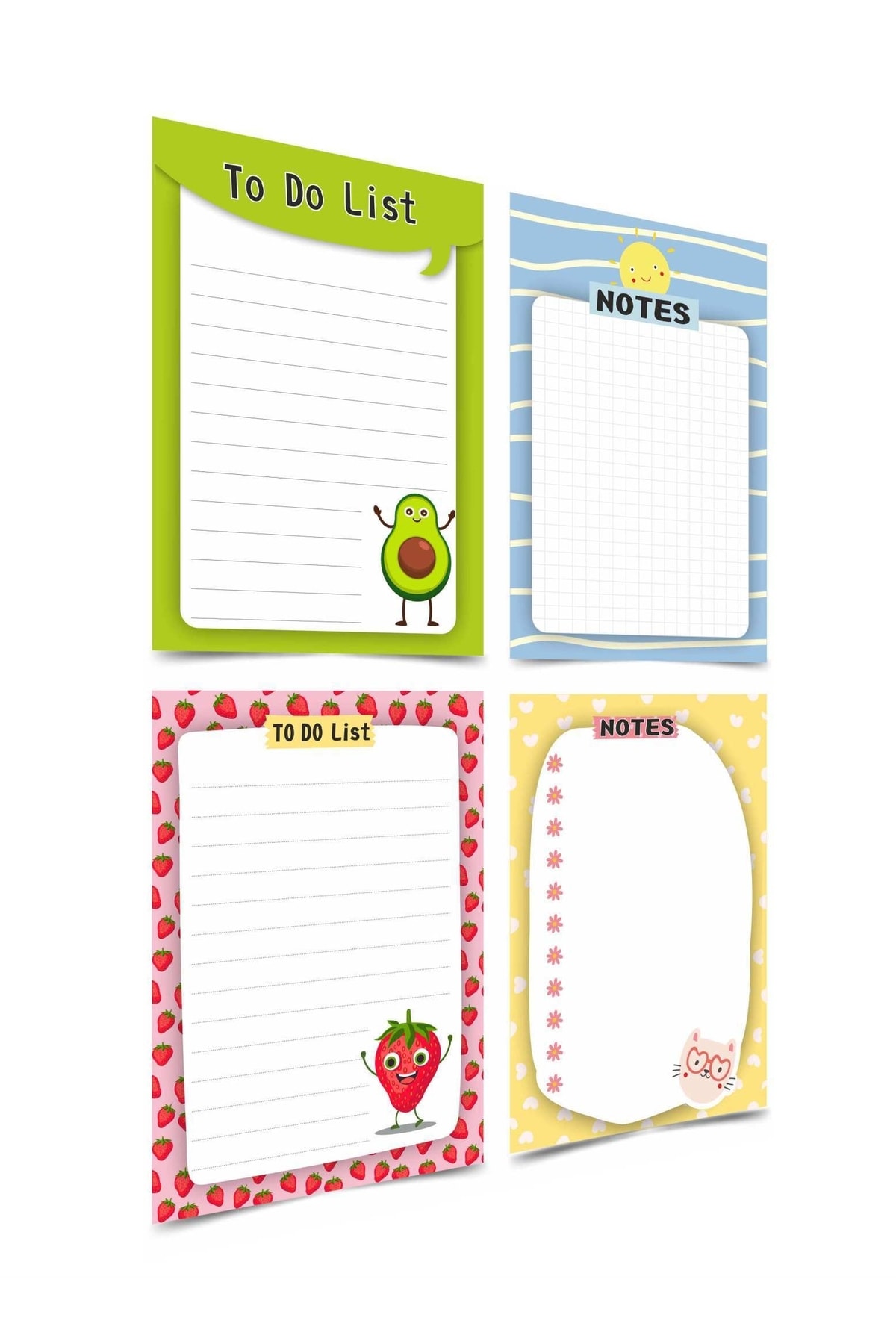 Mapi دفتر ملاحظات - مجموعة دفتر مذكرات مكونة من 4 قطع (قائمة ملاحظات تحت عنوان الشمس والقط والفراولة والأفوكادو) (10-14 سم)