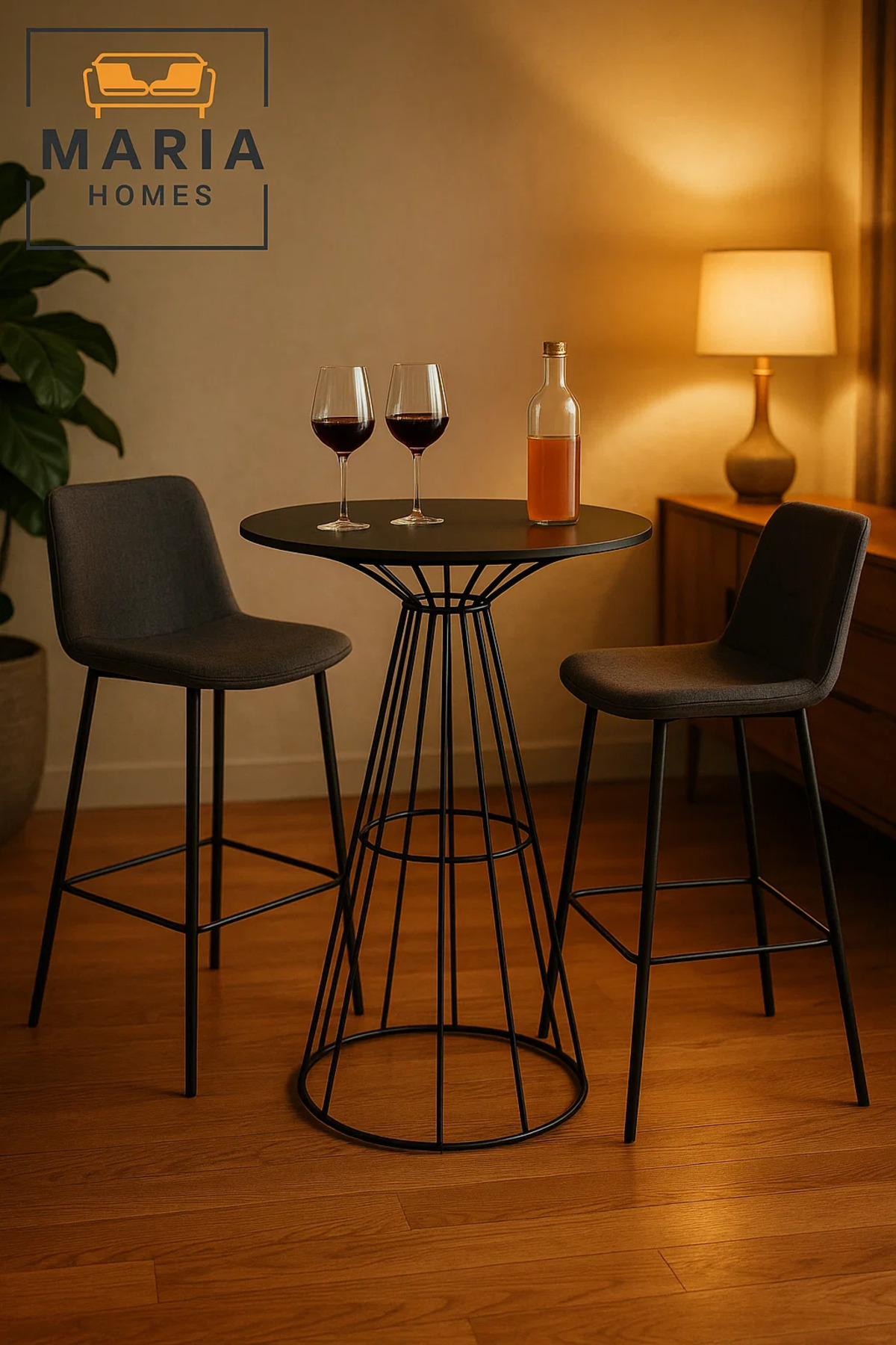 ميزات طاولة مستديرة مميزة بقاعدة مخروطية سلكية وسطح صلب من MARIA HOMES
