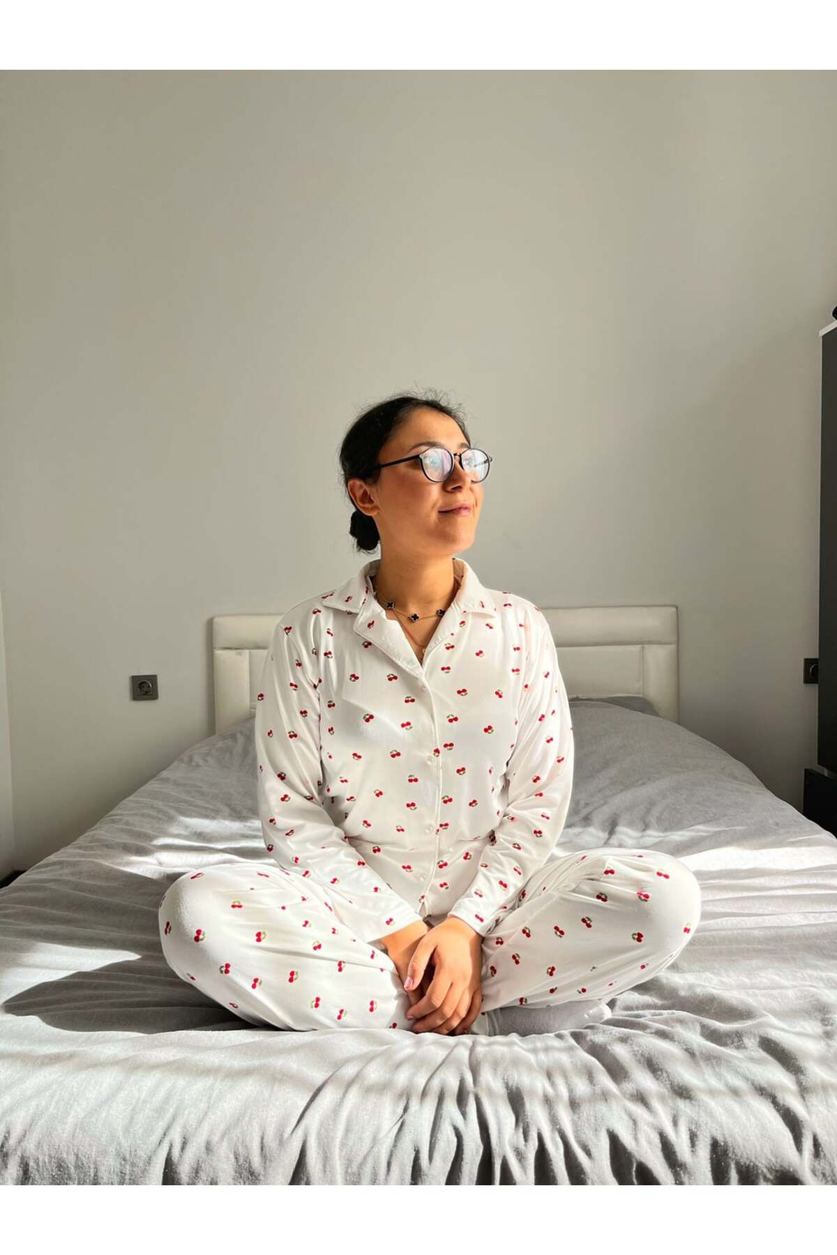 ميزات طقم بيجامة من القطن الكرزي بأزرار أمامية من Marka