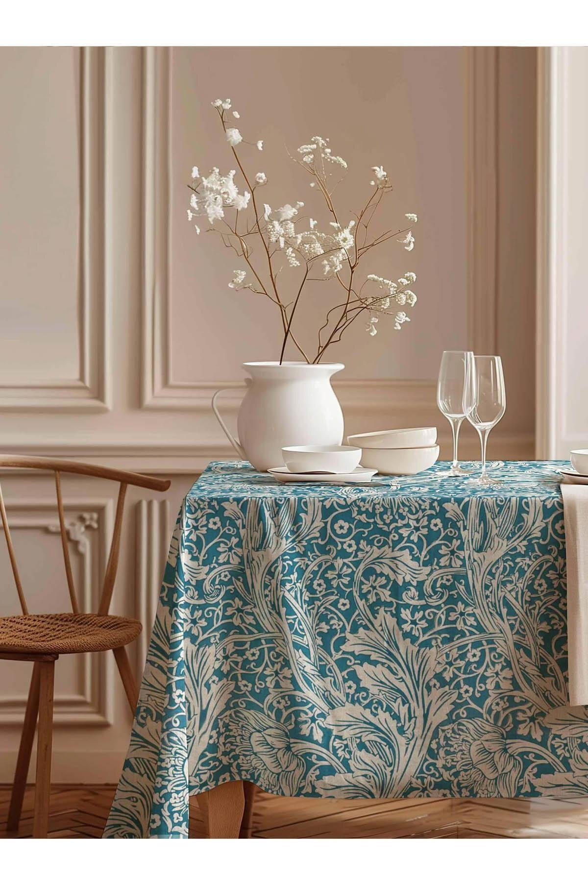 Markaev مفرش طاولة قطني باللون الأزرق الربيعي MSAORT0022