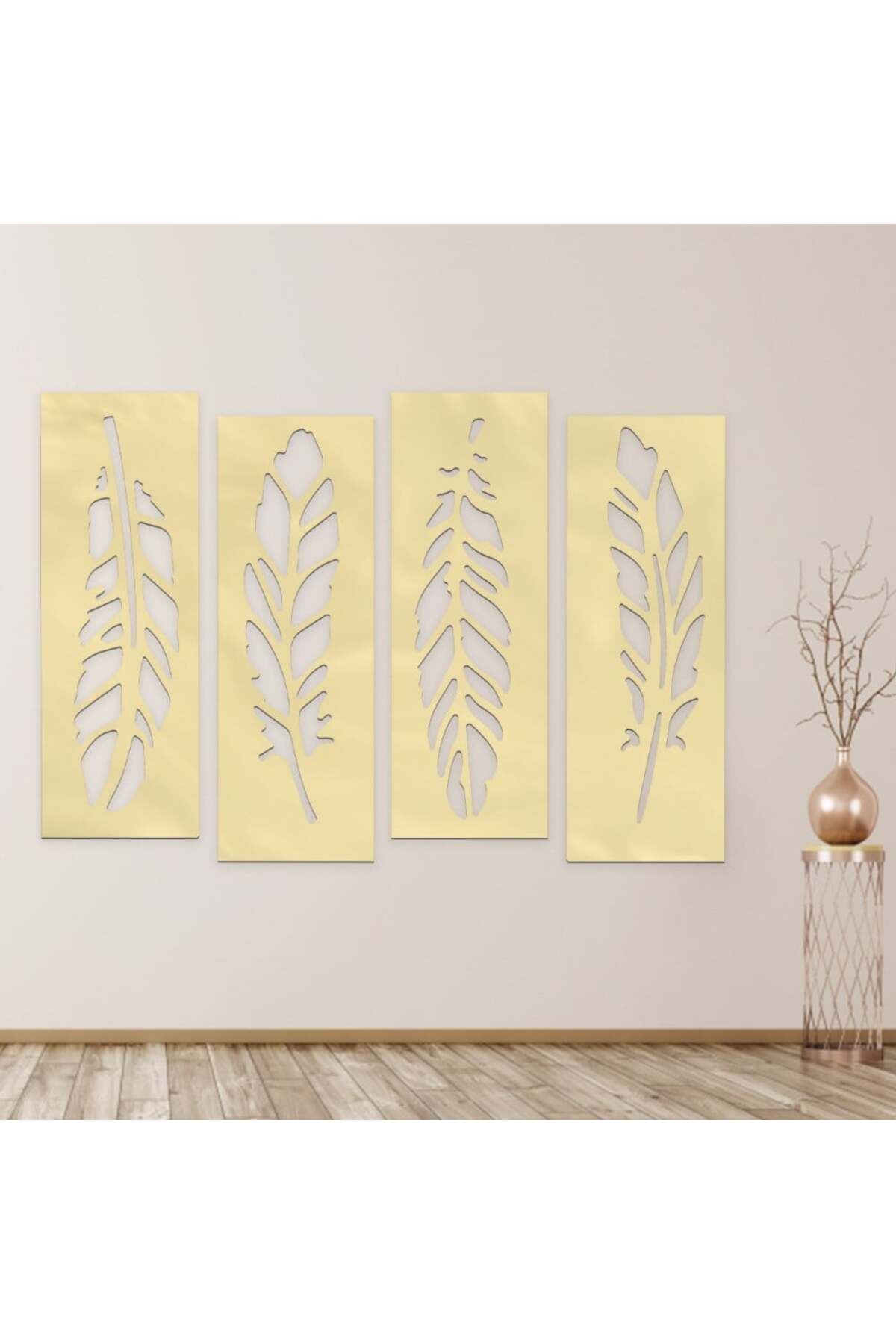 ميزات لوحة اكريلك ذهبي بنقشة ريش من Marktna