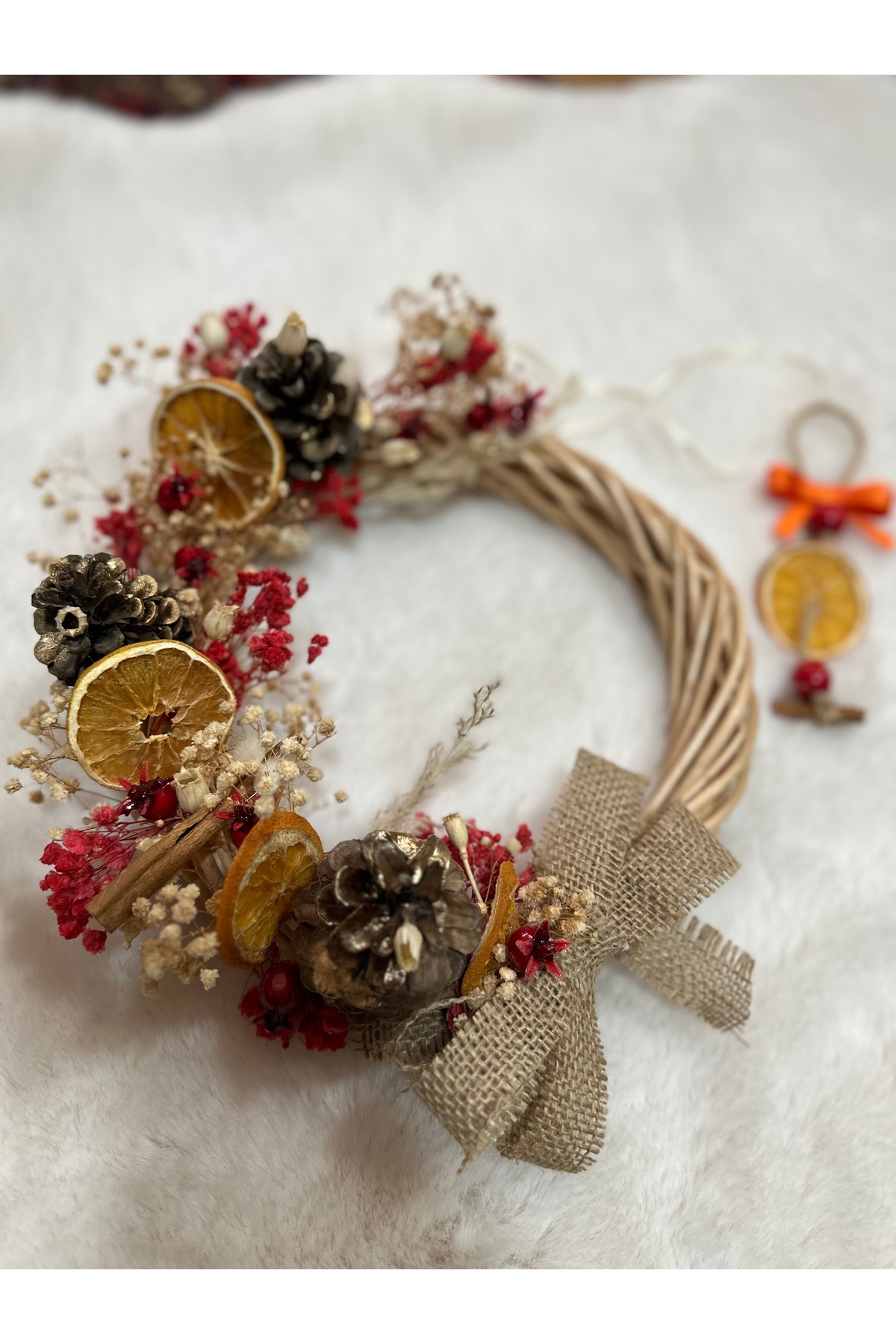ميزات زينة باب بتصميم الربيع مع البرتقال والبطاطس المقلية من Marrone