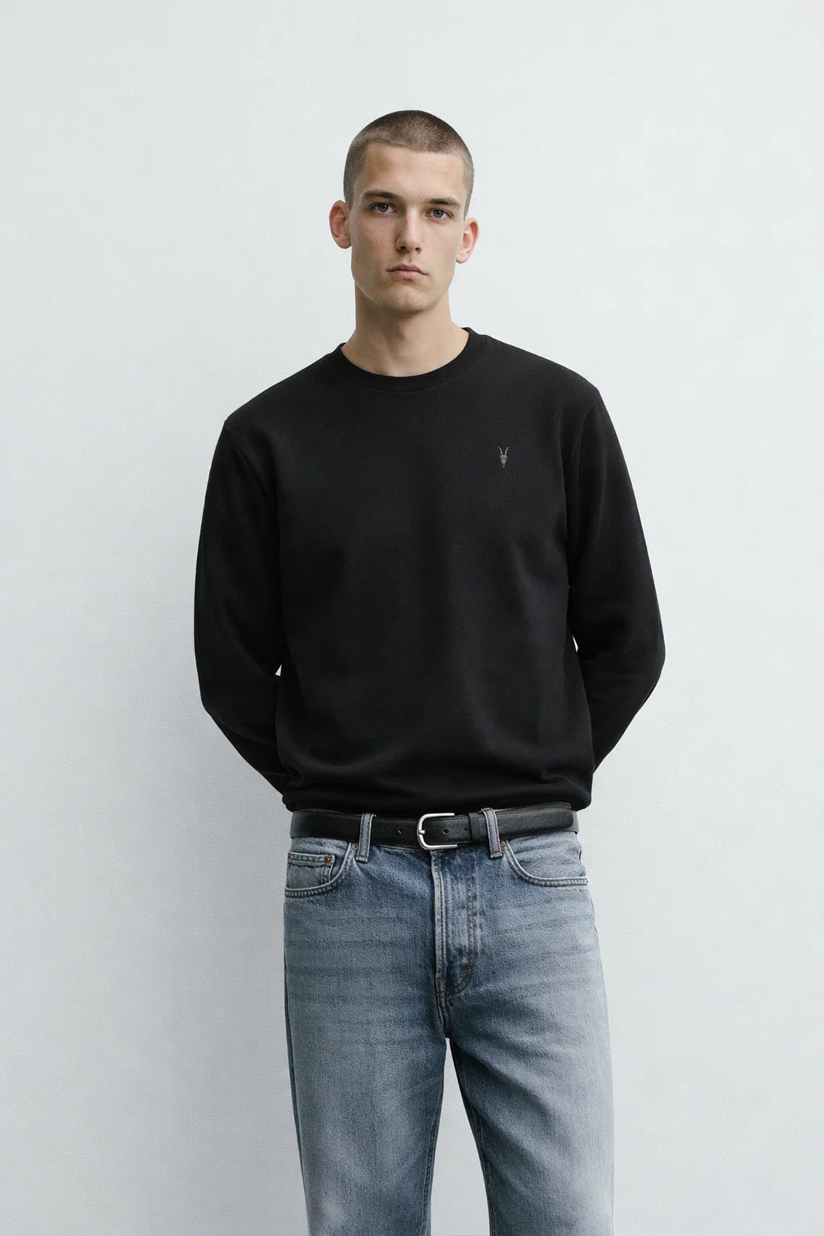 MATERIAL سويت شيرت أسود أساسي برقبة دائرية للرجال