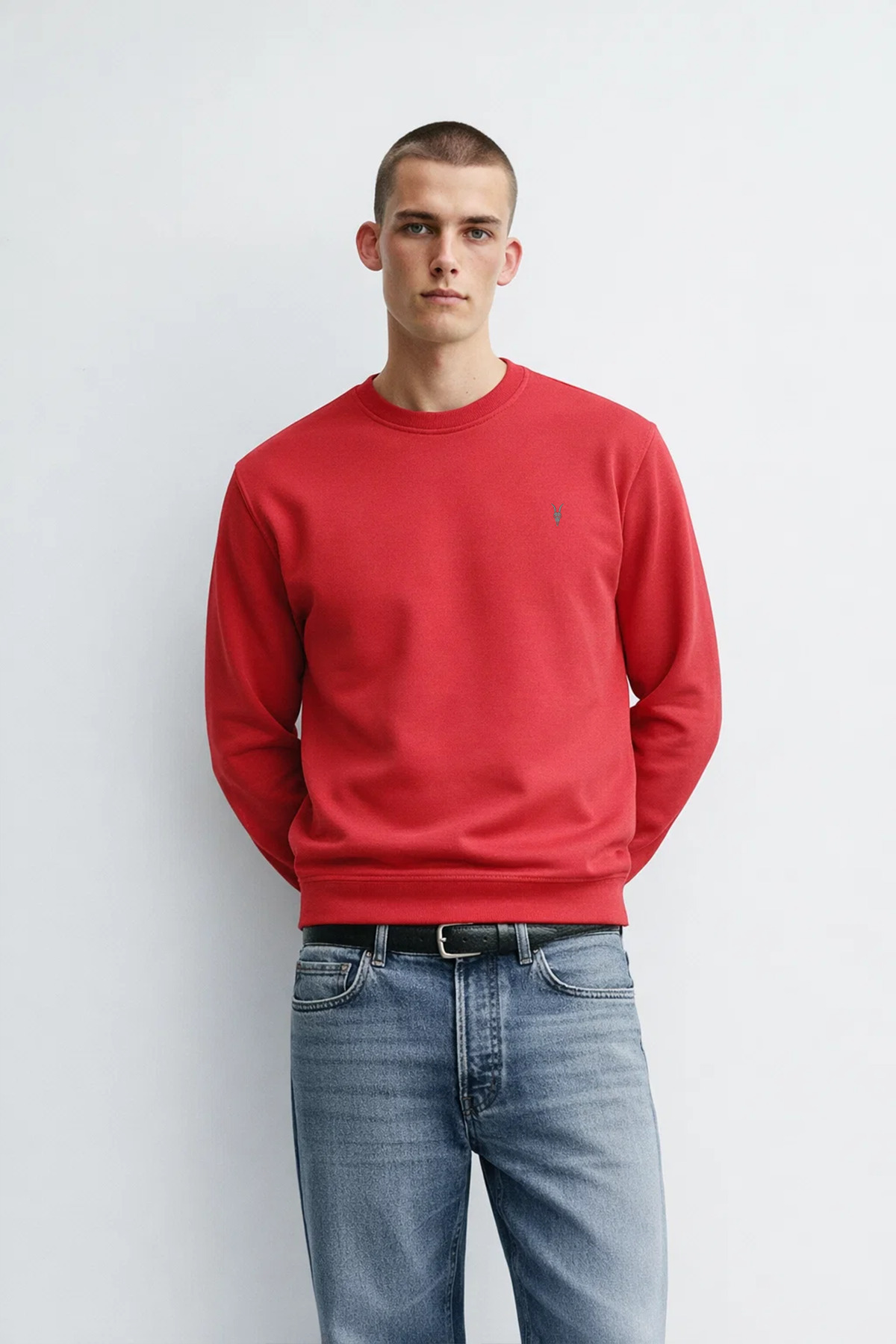 ميزات سويت شيرت رجالي ذو ياقة دائرية باللون الأحمر الأساسي من MATERIAL