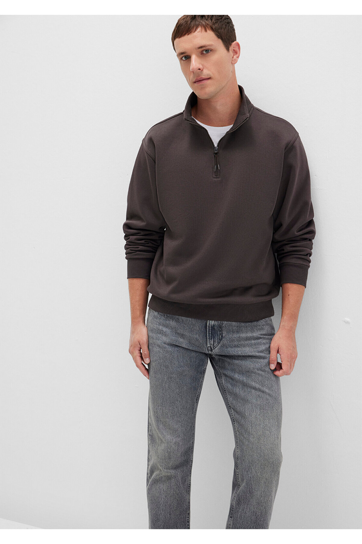 ميزات سويت شيرت أساسي بني بسحاب نصفي 0S10278-70219 من Mavi