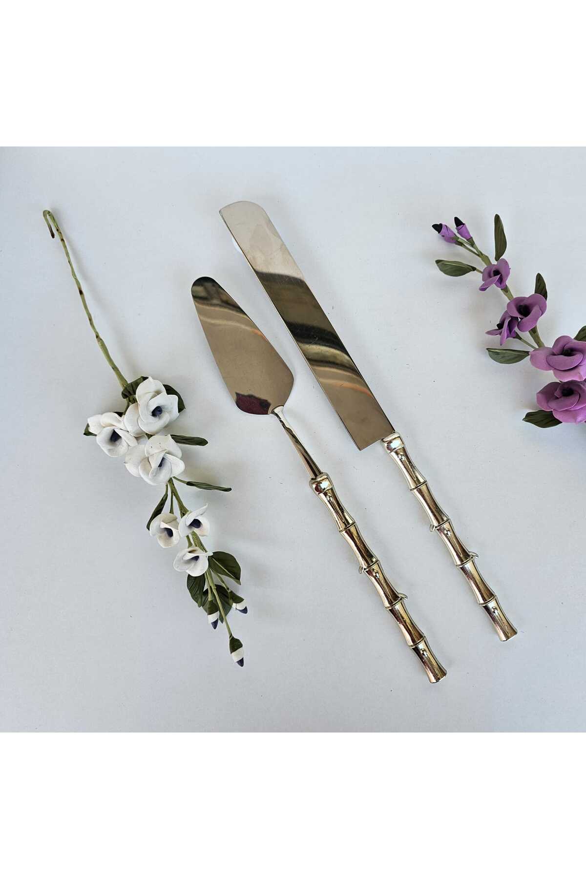 MaviDamla طقم تقديم الكيك من قطعتين باللون الفضي من الخيزران
