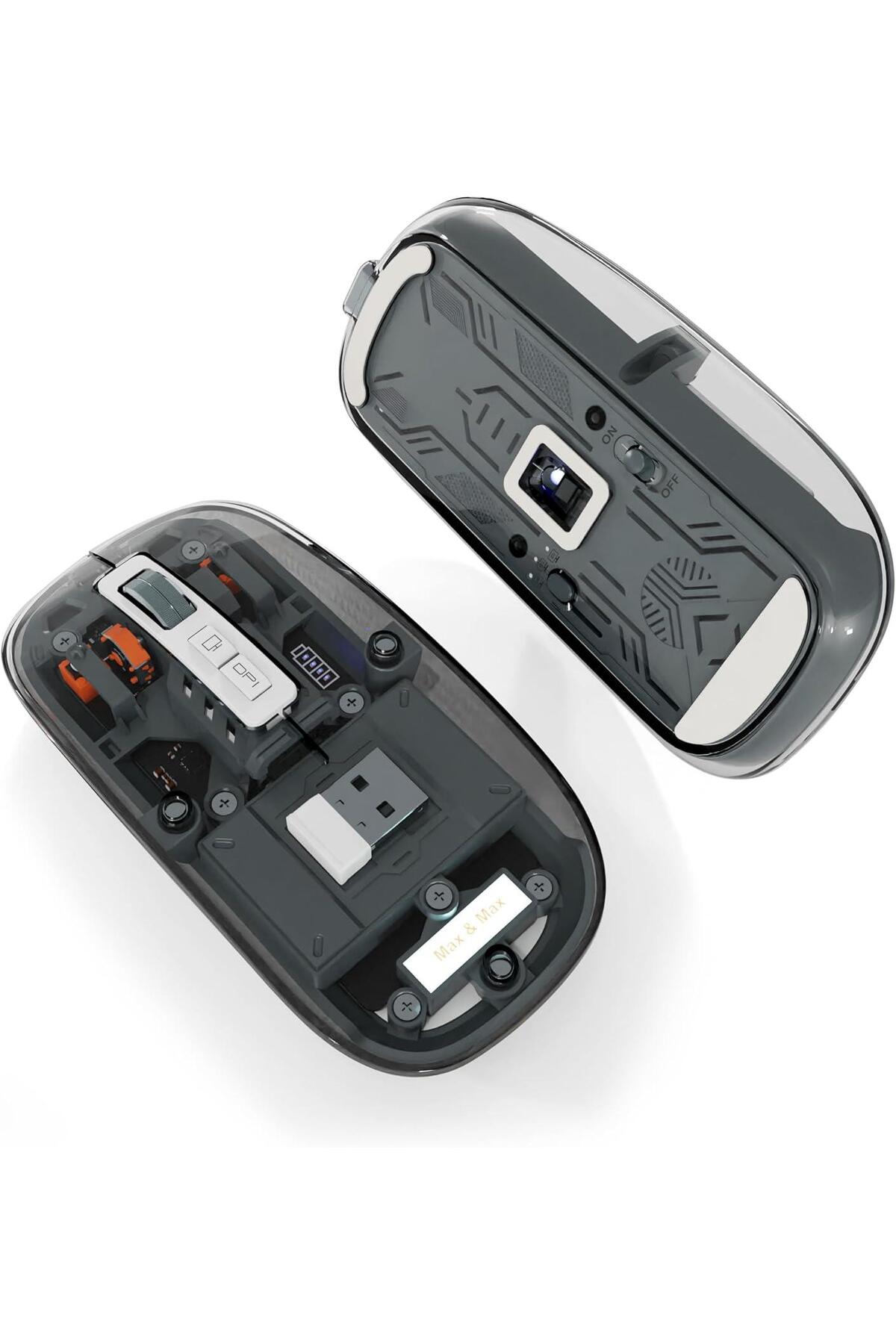 Max&Max ماوس لاسلكي ماكس آند ماكس كريستال شفاف، قابل للتعديل DPI للألعاب