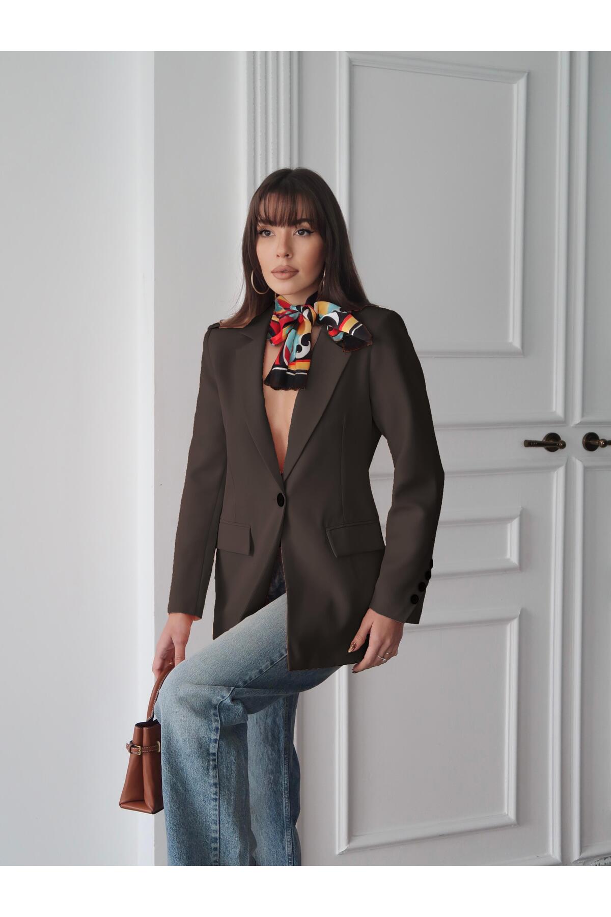 MAXXANA سترة بليزر مبطنة بأزرار غير متماثلة على الأكمام