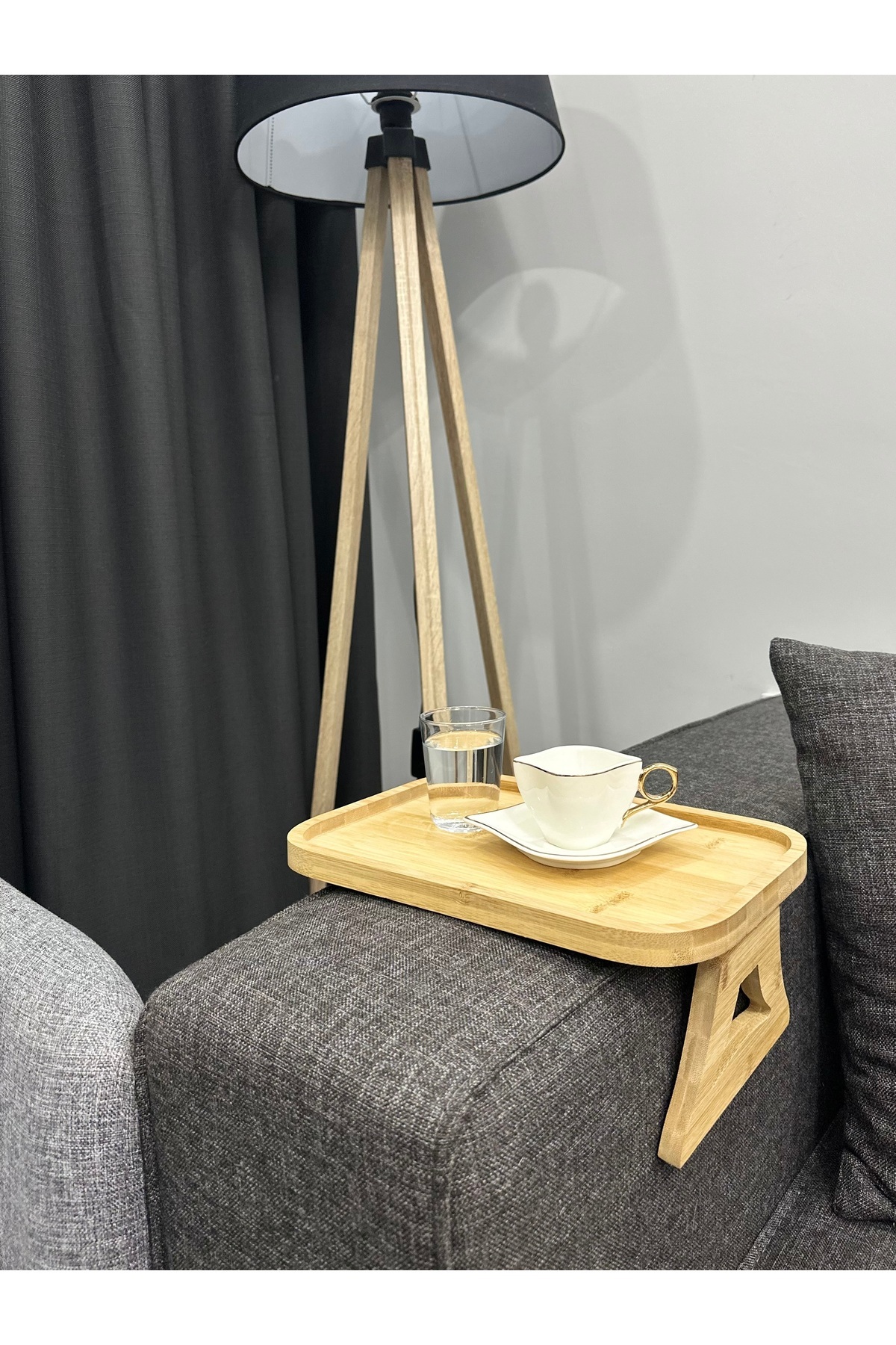 ميزات جانب أريكة من الخيزران - صينية تقديم قابلة للطي من may home design