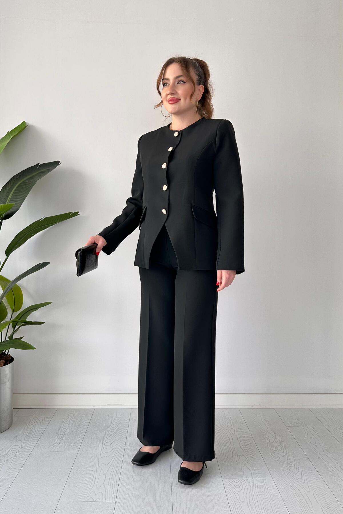 ميزات طقم أسود بأكمام طويلة و5 أزرار من MaziButik