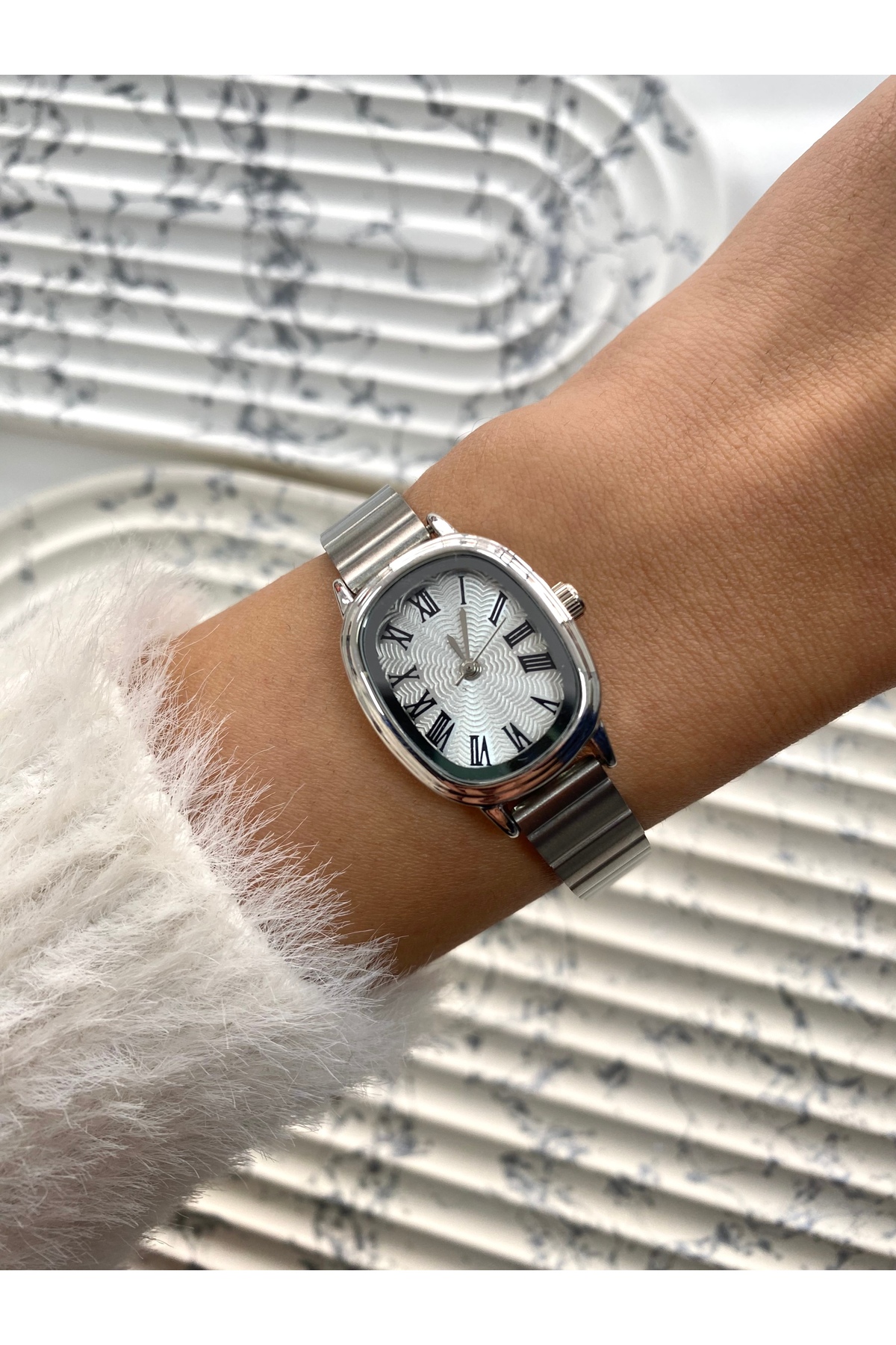 ميزات ساعة يد نسائية فضية أساسية جريئة مع داخل أبيض من Mazzy
