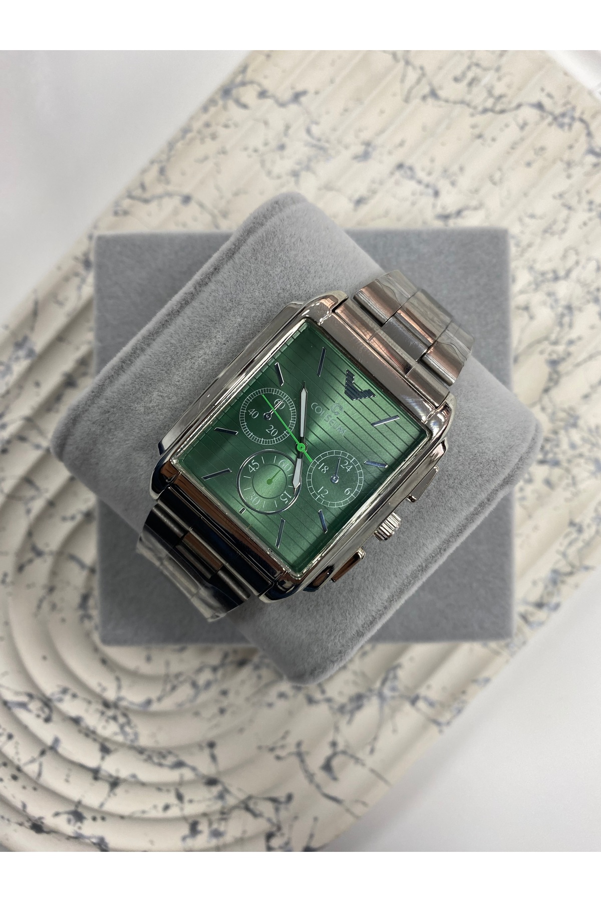 ميزات ساعة يد رجالية مستطيلة باللون الأخضر الفضي من Mazzy