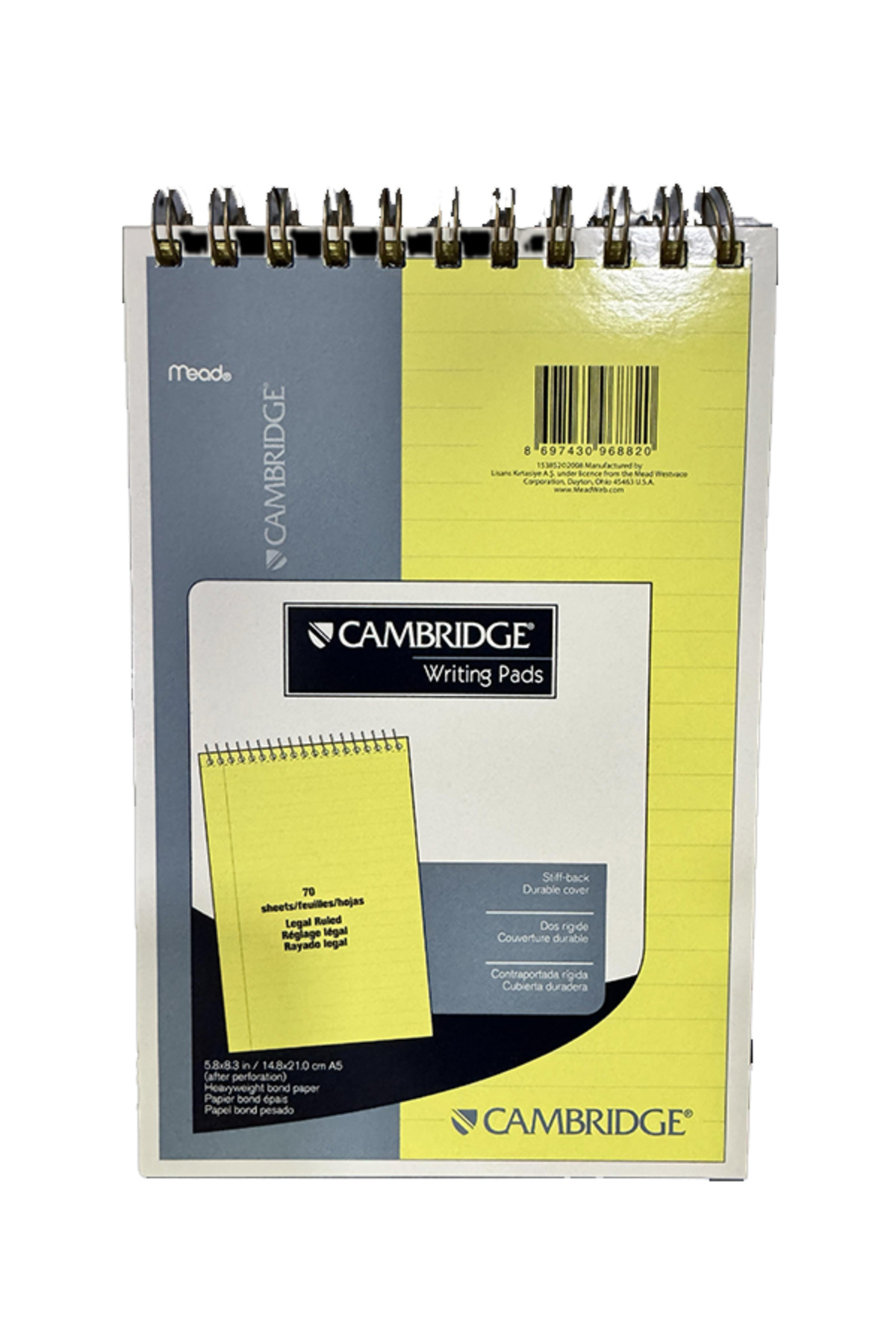 ميزات دفتر ملاحظات كامبريدج مخطط مقاس A5 70 ورقة باللون الأصفر من Mead
