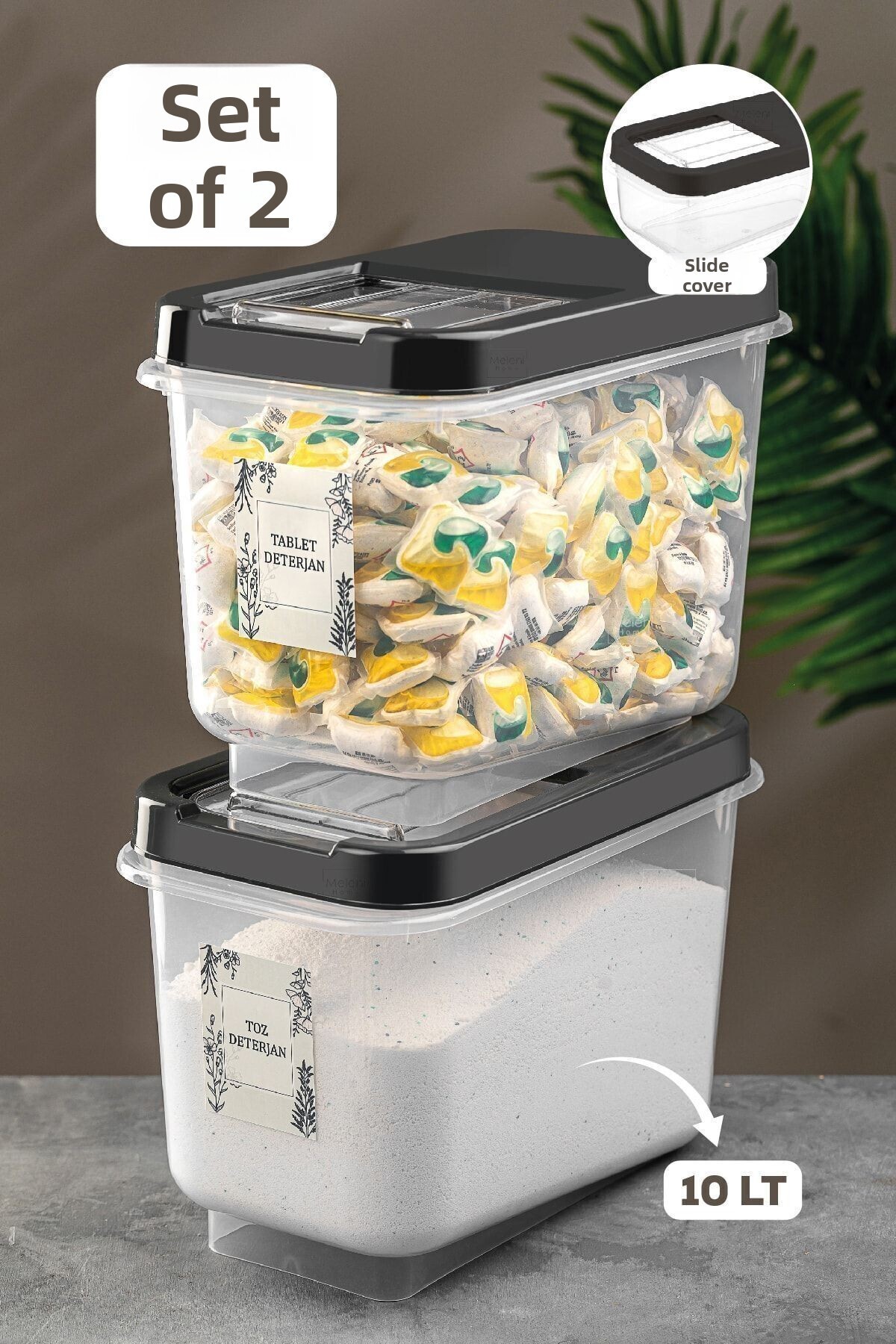 ميزات صندوق تخزين المنظفات اللوحي بغطاء منزلق سعة 10 لتر مكون من قطعتين - حاوية تخزين المنظفات المسمى أنثراسايت من Meleni Home