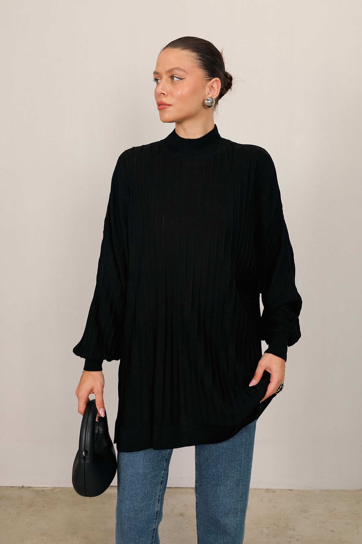 ميزات تونيك تريكو أسود أساسي 70-2199 من Melike Tatar