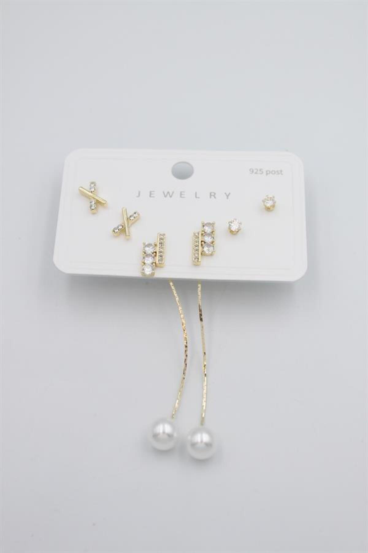 MENESSA مجموعة أقراط متعددة - ذهبي