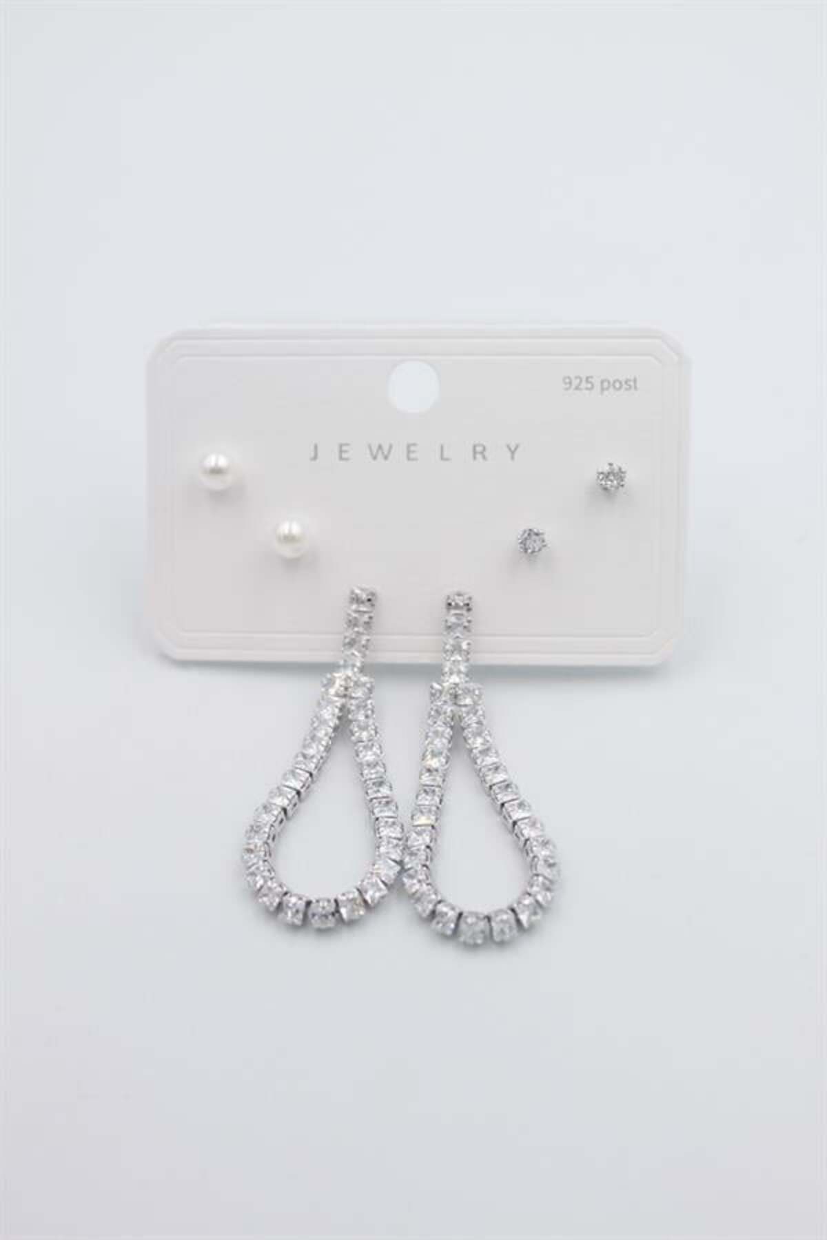 MENESSA مجموعة متعددة من الأقراط - فضية