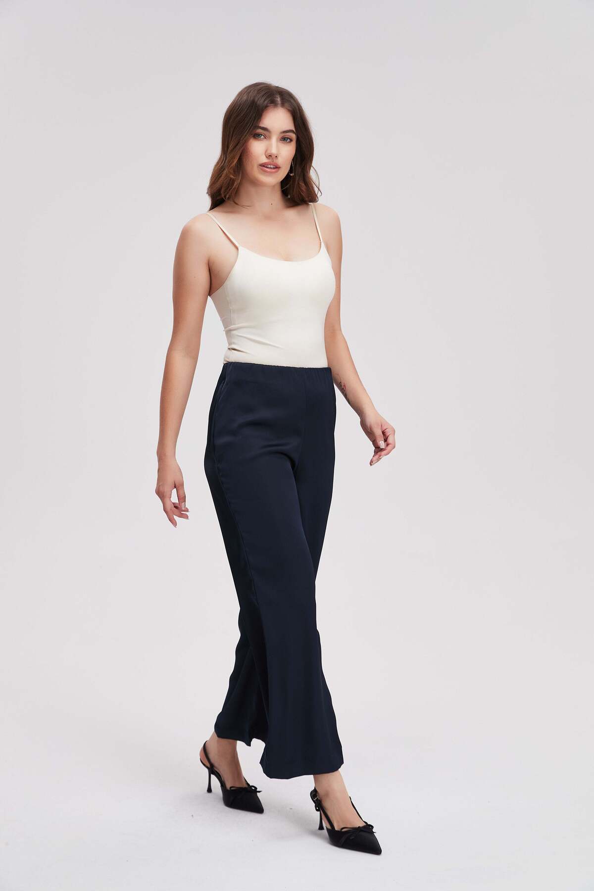 ميزات بنطال طويل كلاسيكي سادة من menta