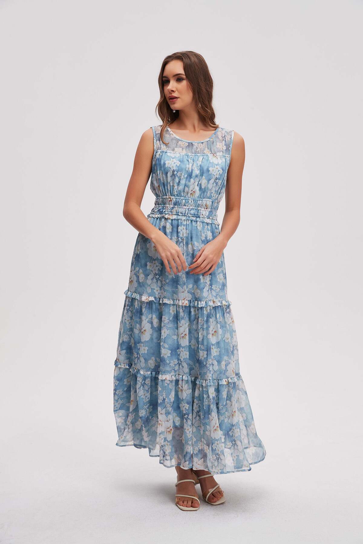 ميزات فستان ماكسي بدون أكمام منقوش من menta