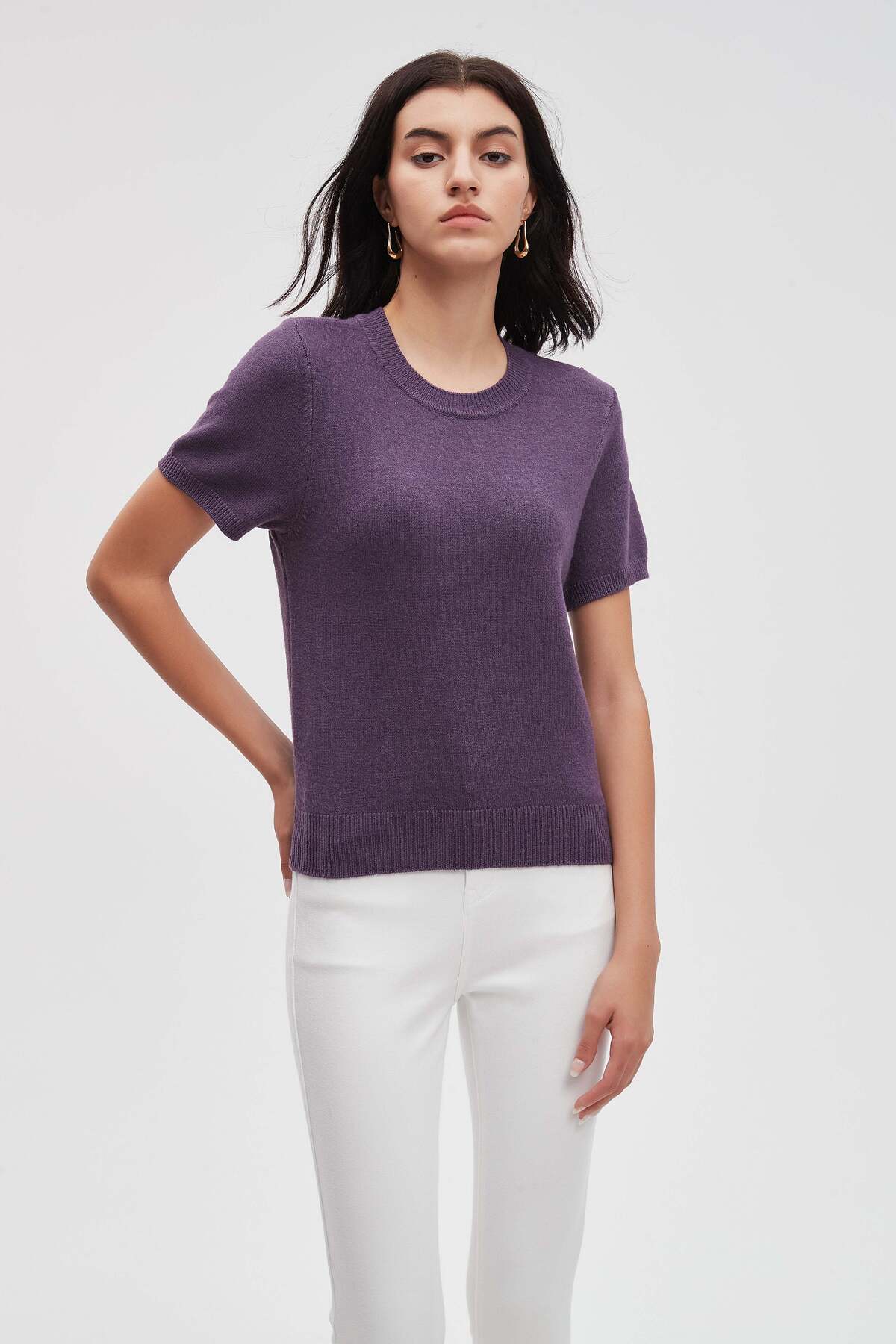 ميزات بلوزة سادة قصيرة بأكمام نصفية من menta