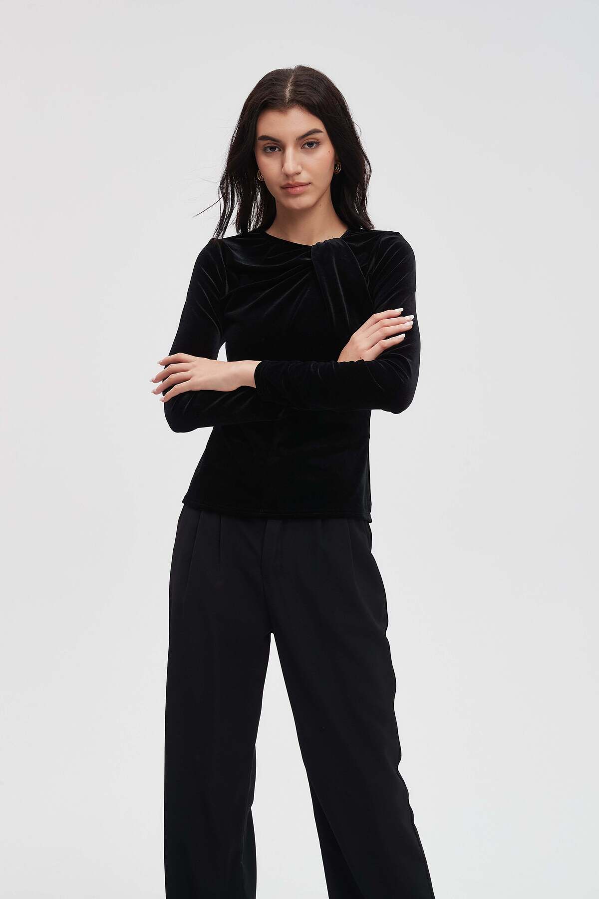 ميزات بلوزة سادة بأكمام طويلة من menta