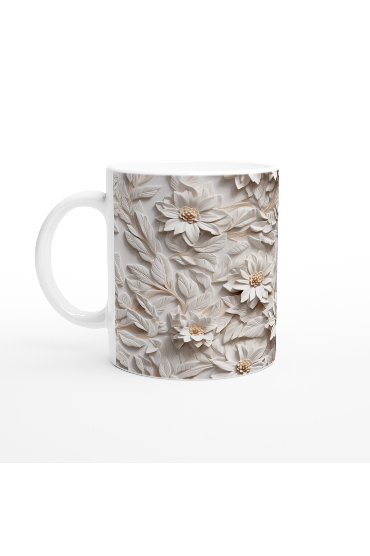 ميزات كوب أبيض منقوش على شكل زهرة من MESCHAIN