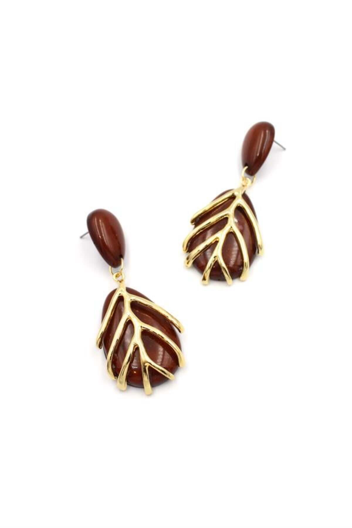 ميزات أقراط على شكل أوراق الشجر - بني من Mestore