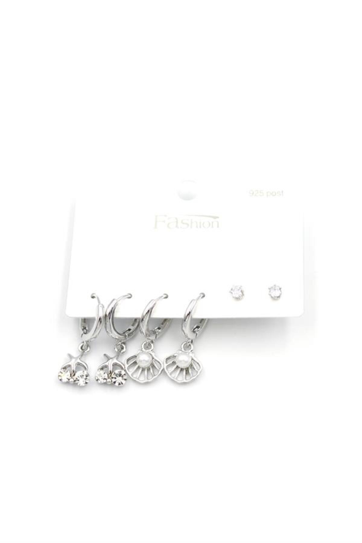 Mestore أقراط متعددة اللؤلؤ - فضية