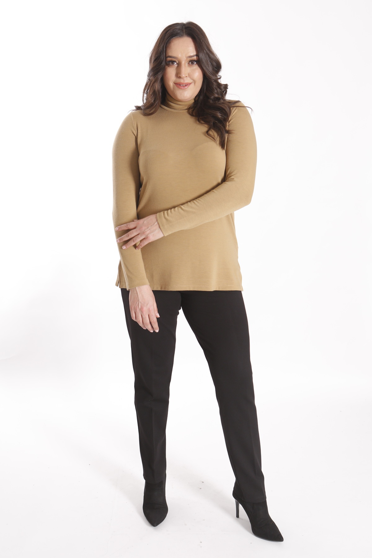 metpoint بلوزة بيج بياقة عالية مقاس كبير