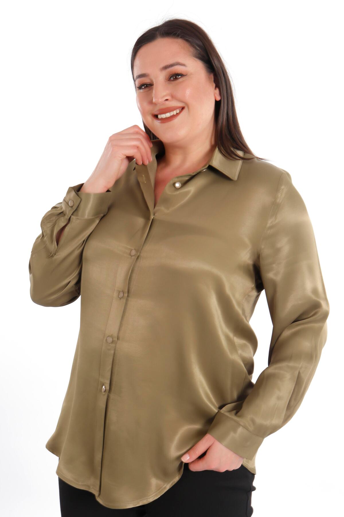 ميزات قميص تريند 42 بلس كبير الحجم ذو لون كاكي أساسي من Metpoint