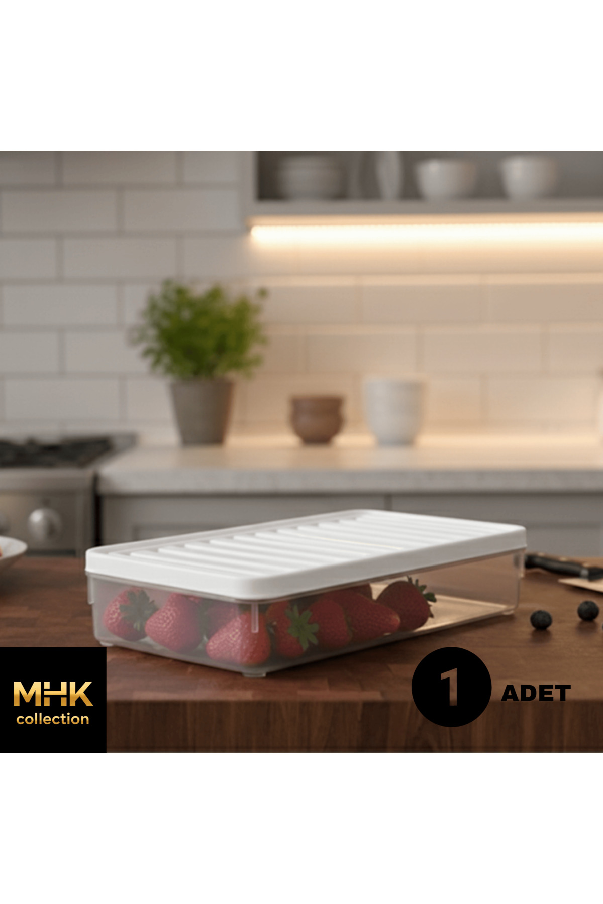 MHK Collection حاوية تخزين مستطيلة بغطاء بلاستيكي أبيض