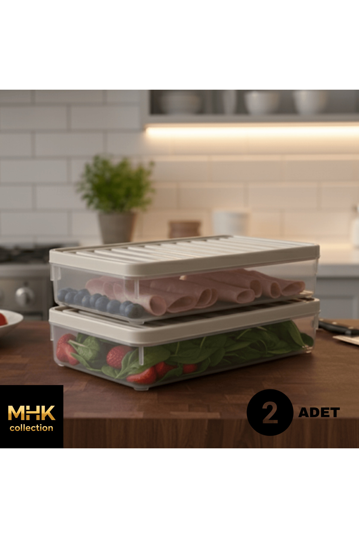 MHK Collection حاوية تخزين مستطيلة بغطاء بلاستيكي 1 لتر