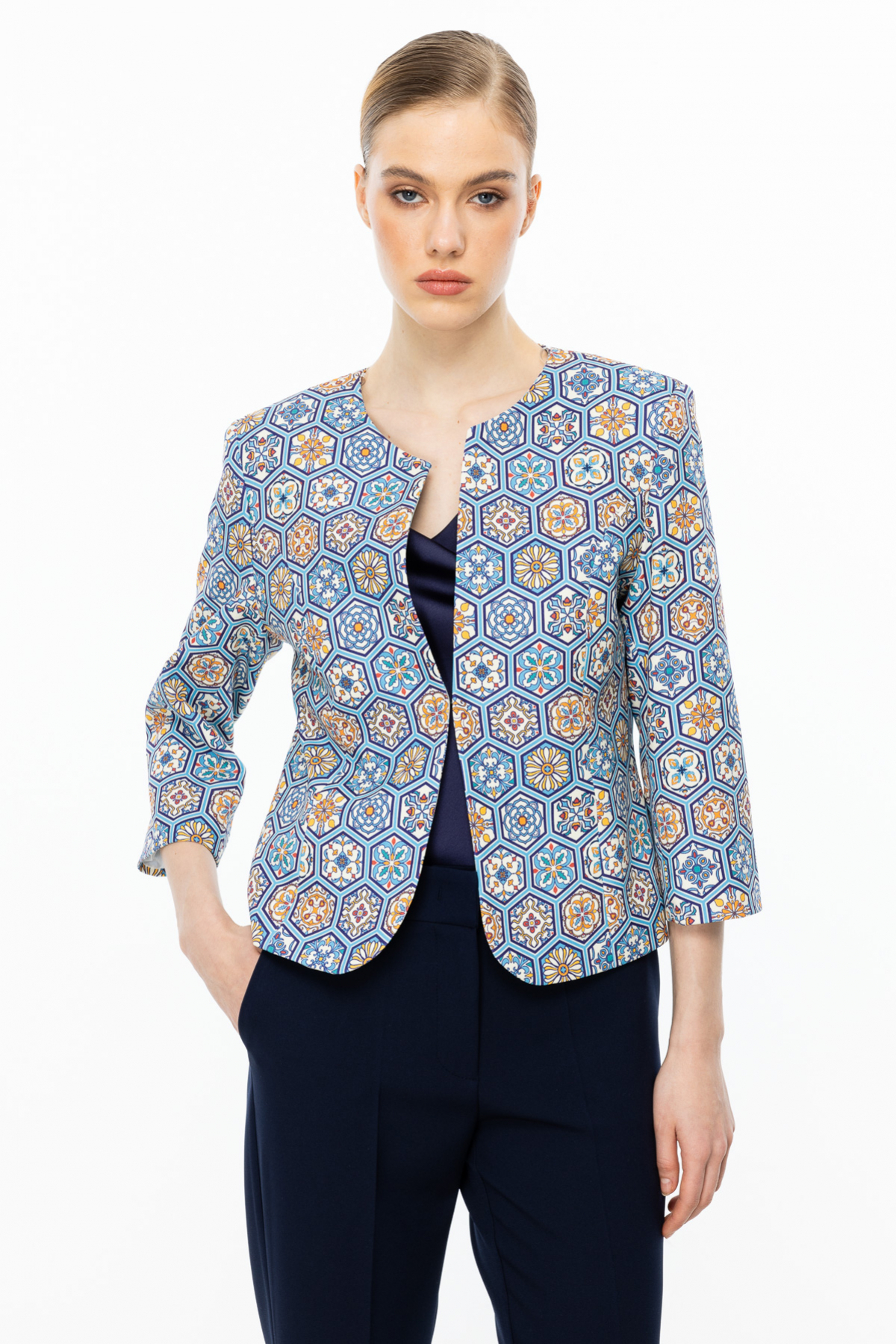 ميزات سترة قصيرة منقوشة بنصف كم من Mi Pret a Porter