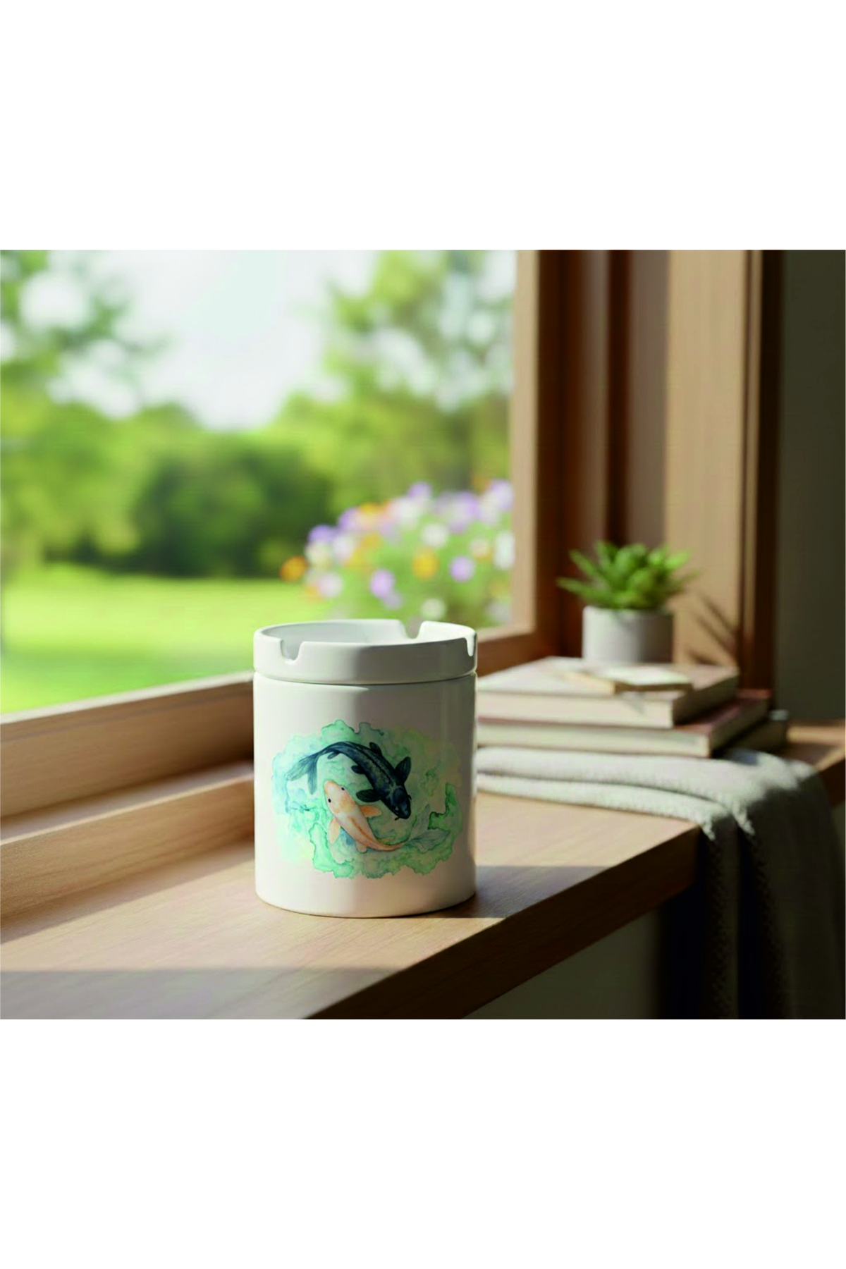 ميزات منفضة سجائر سيراميكية مزخرفة بنمط سمكة الكوي من mibales