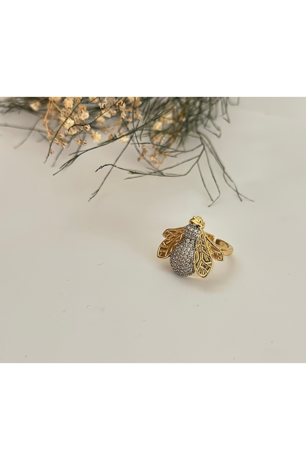 ميزات خاتم النحل المكافئ من العلامة التجارية مع حجر الزركون، خاتم البركة. من mibrillo