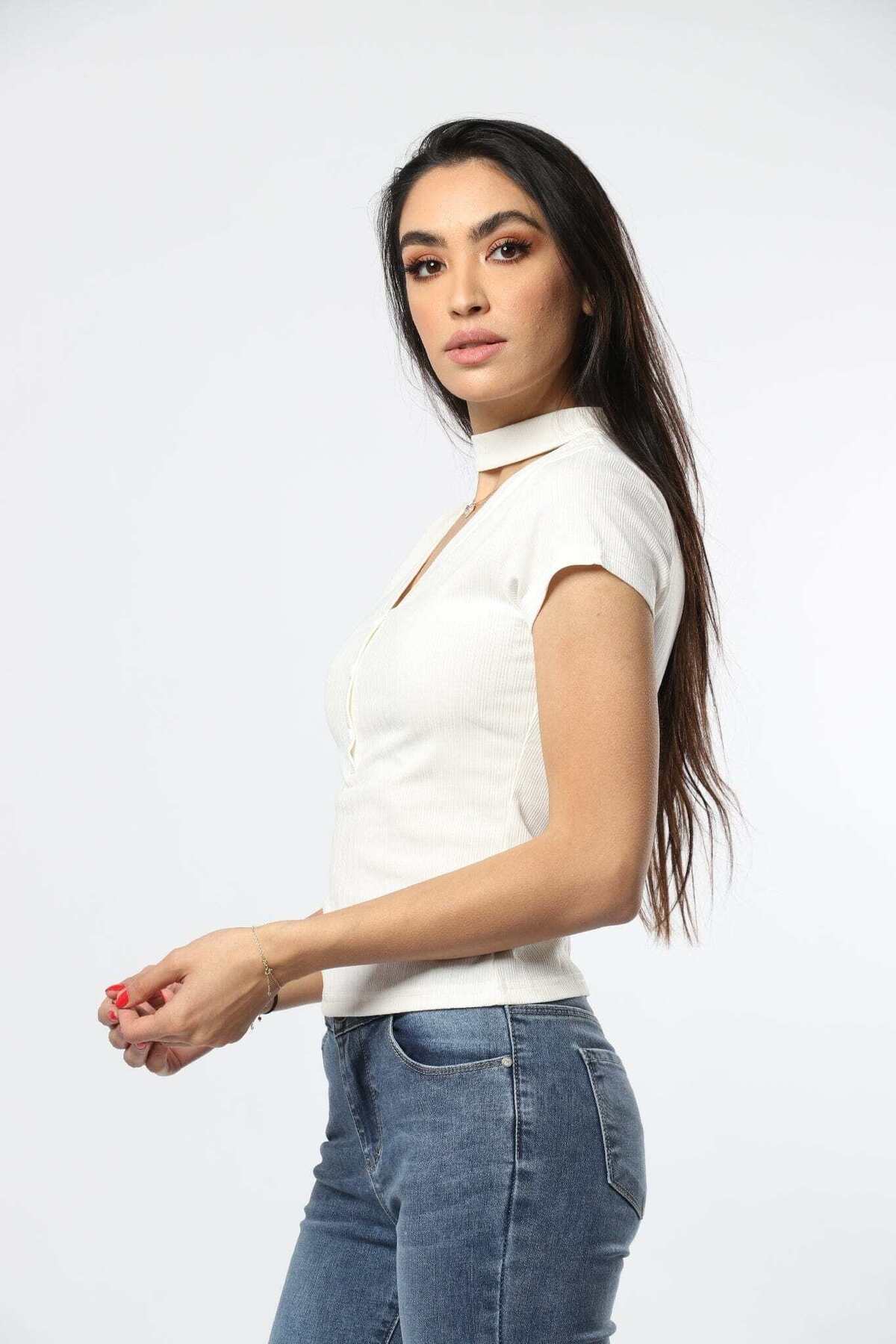 ميزات بلوزة بأكمام قصيرة وأزرار أمامية من mica