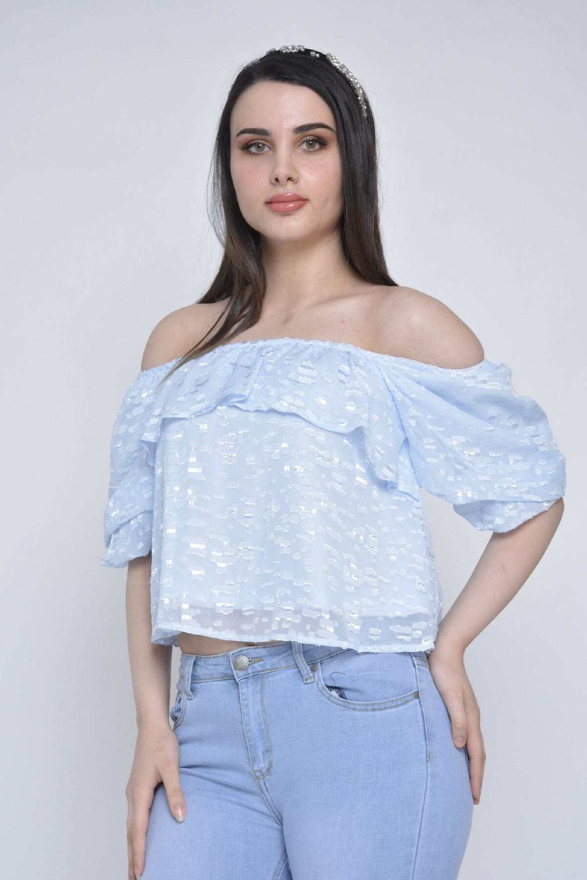 ميزات بلوزة شيفون بأكمام نصفية من mica