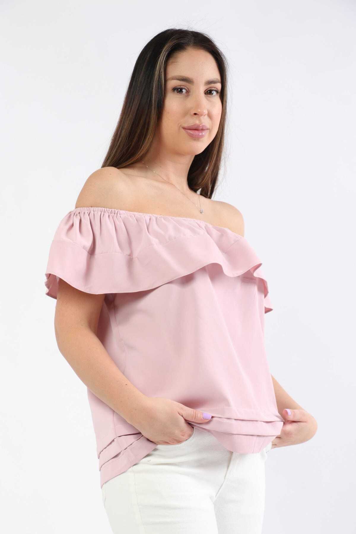 ميزات بلوزة مكشكشة مكشوفة الكتفين من mica