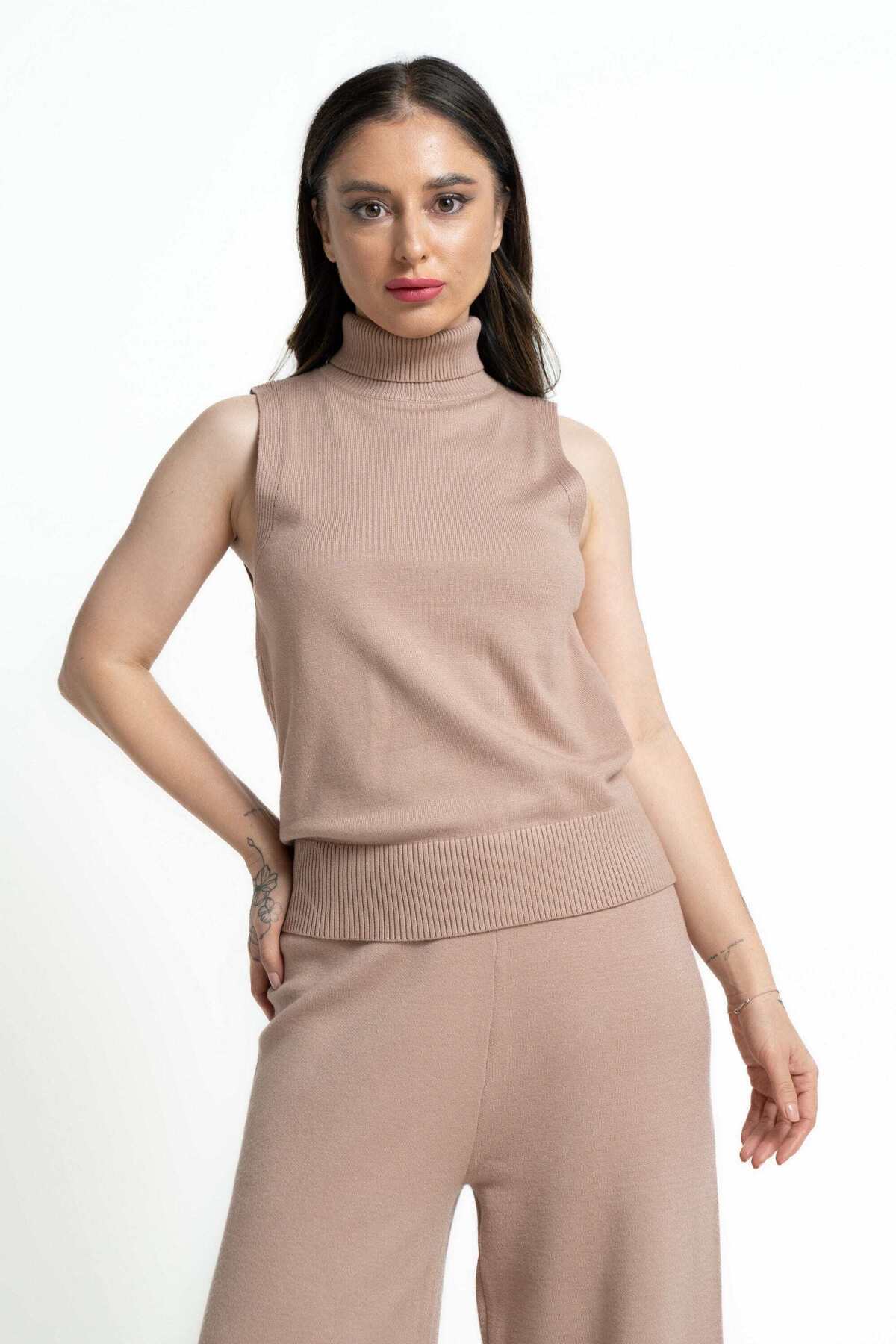 ميزات بلوزة سادة برقبة عالية من mica